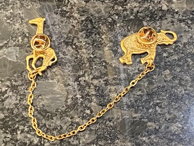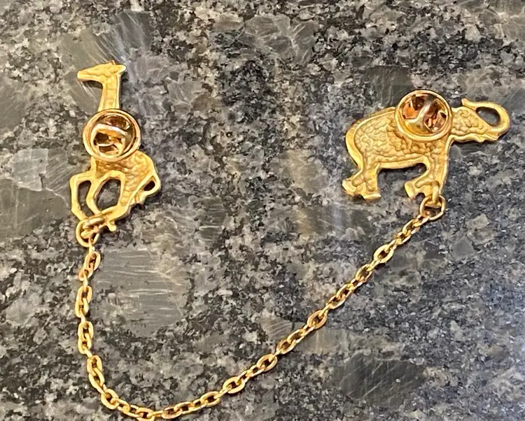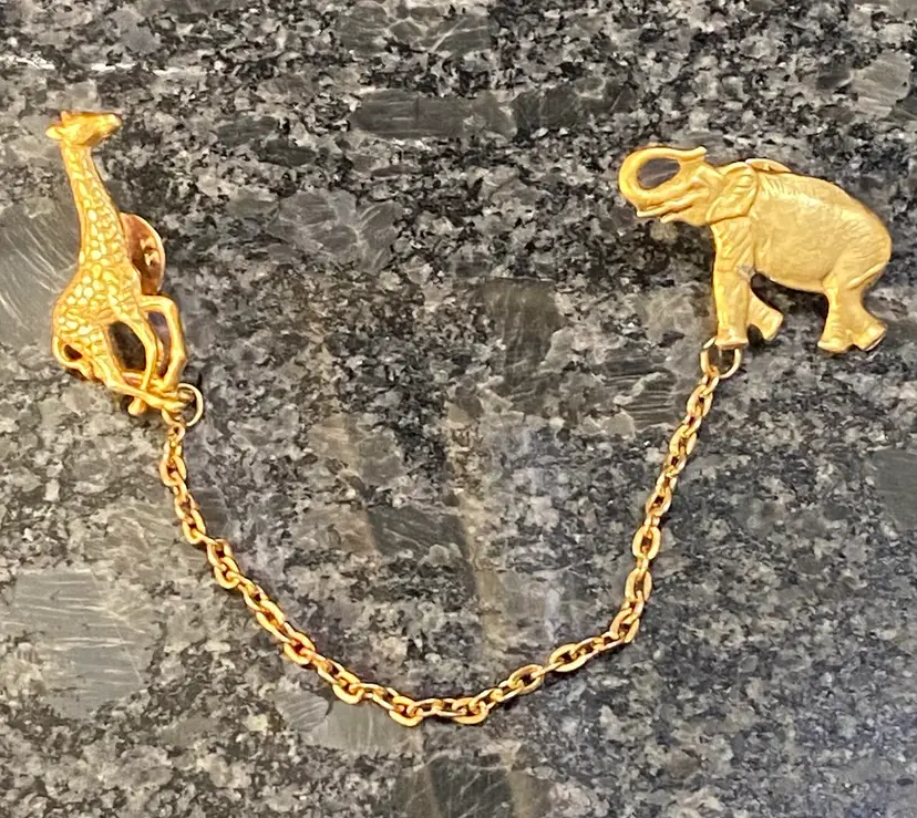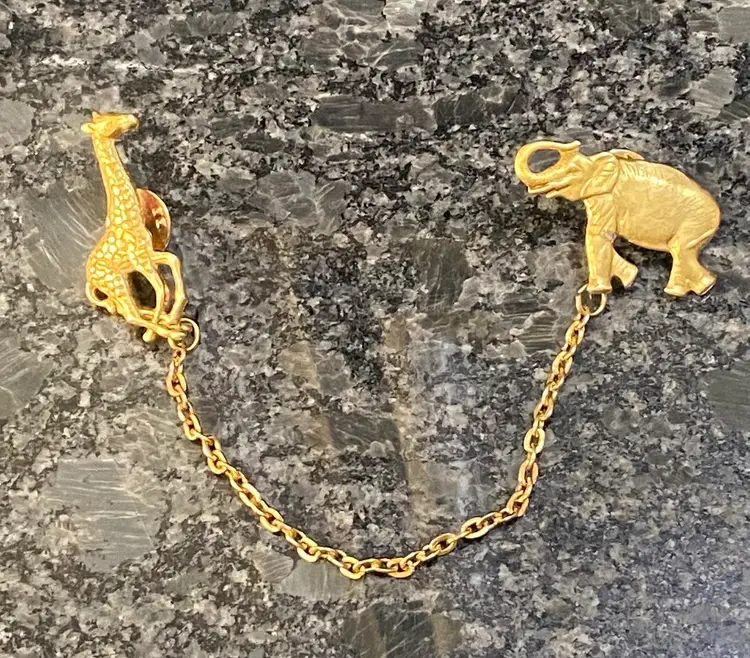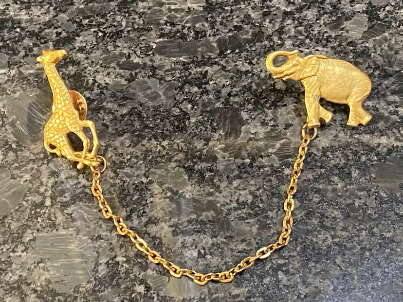 Elephant & Giraffe chain Pin. Costume jewelry. storage locker find