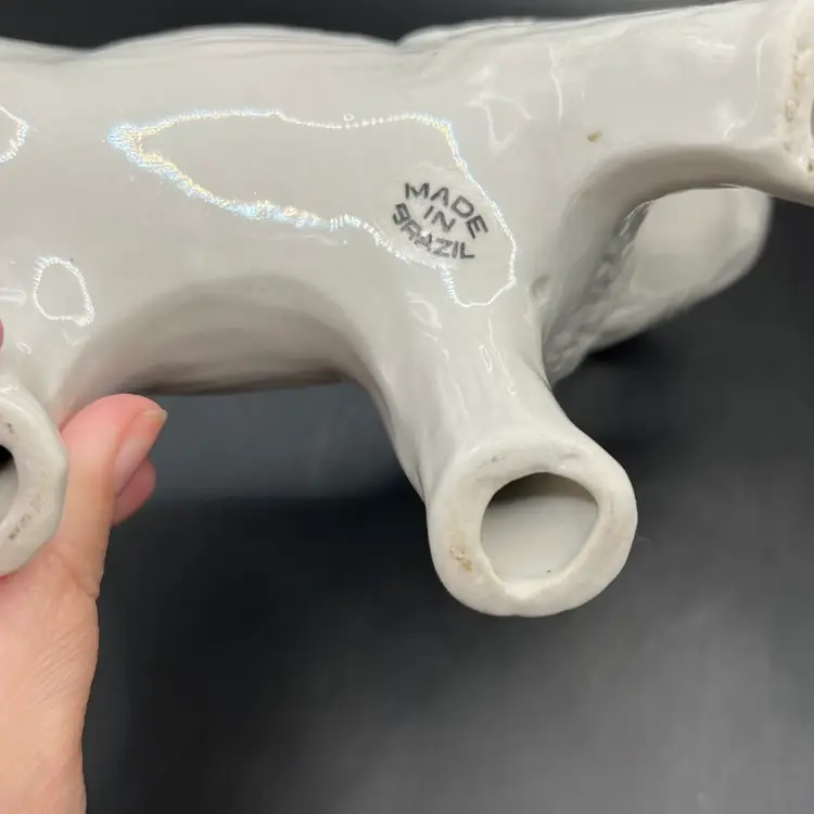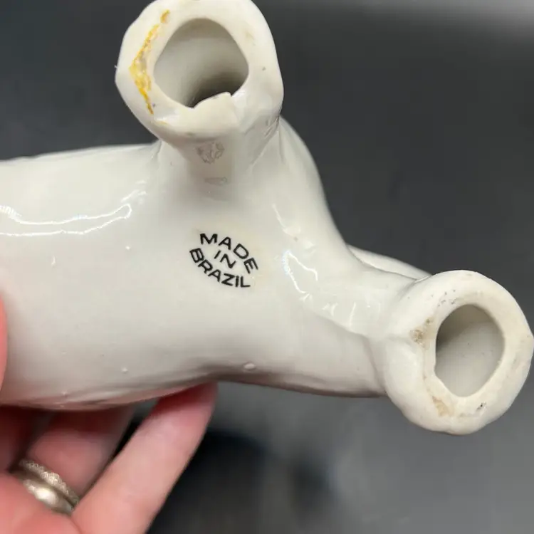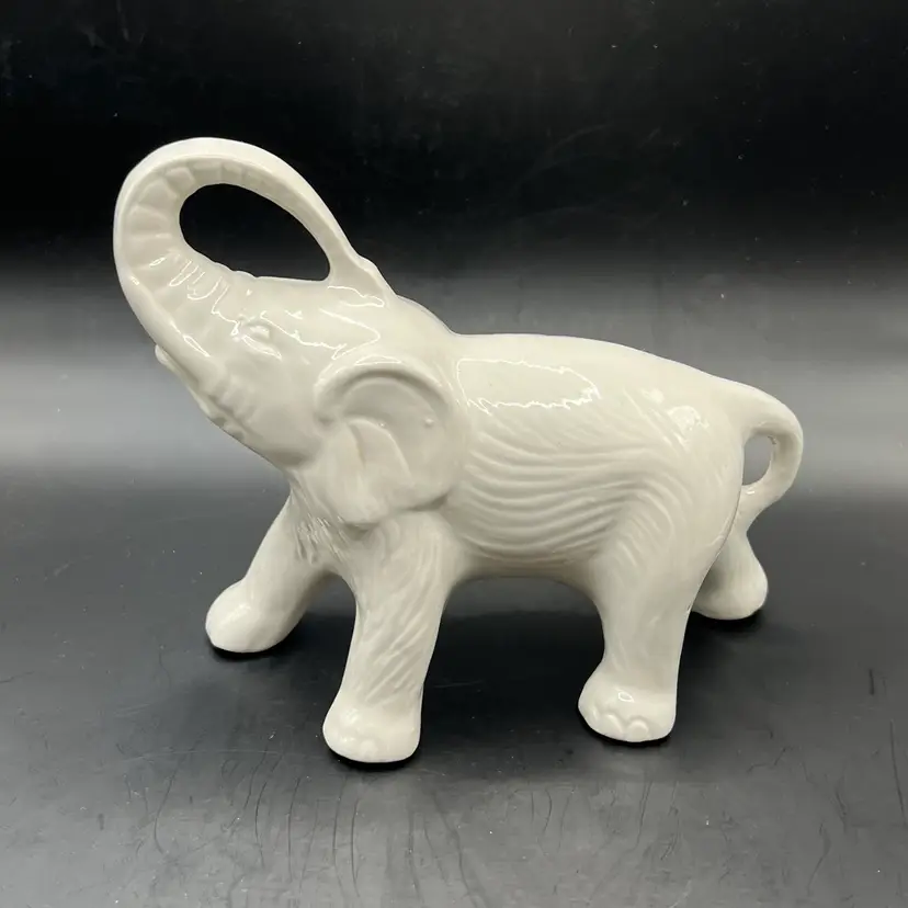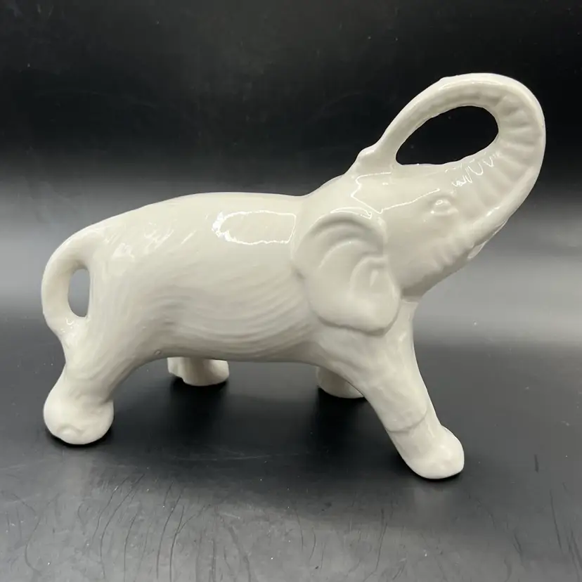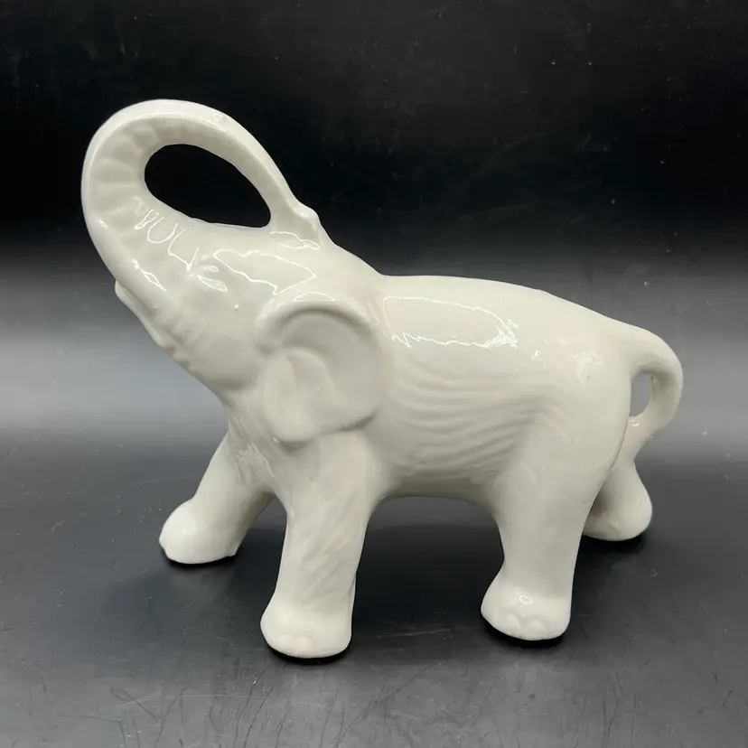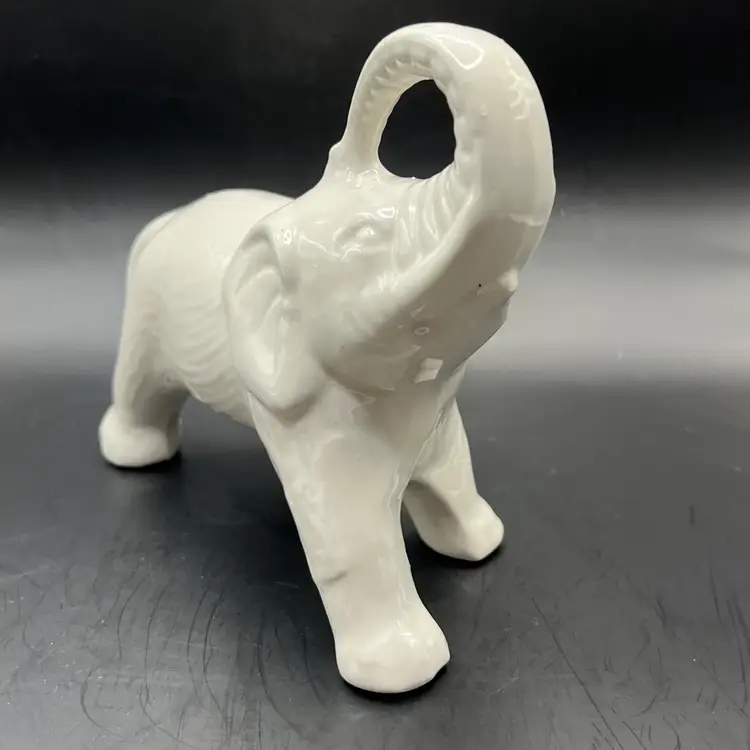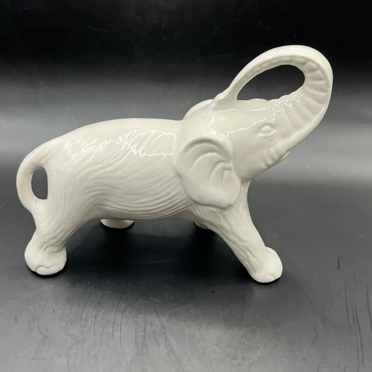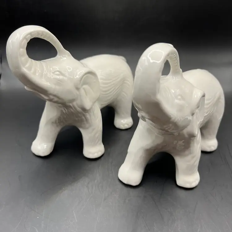 ELEPHANTS Set of 2 White Ceramic Figurines Statues Made In Brazil 6 Inch
