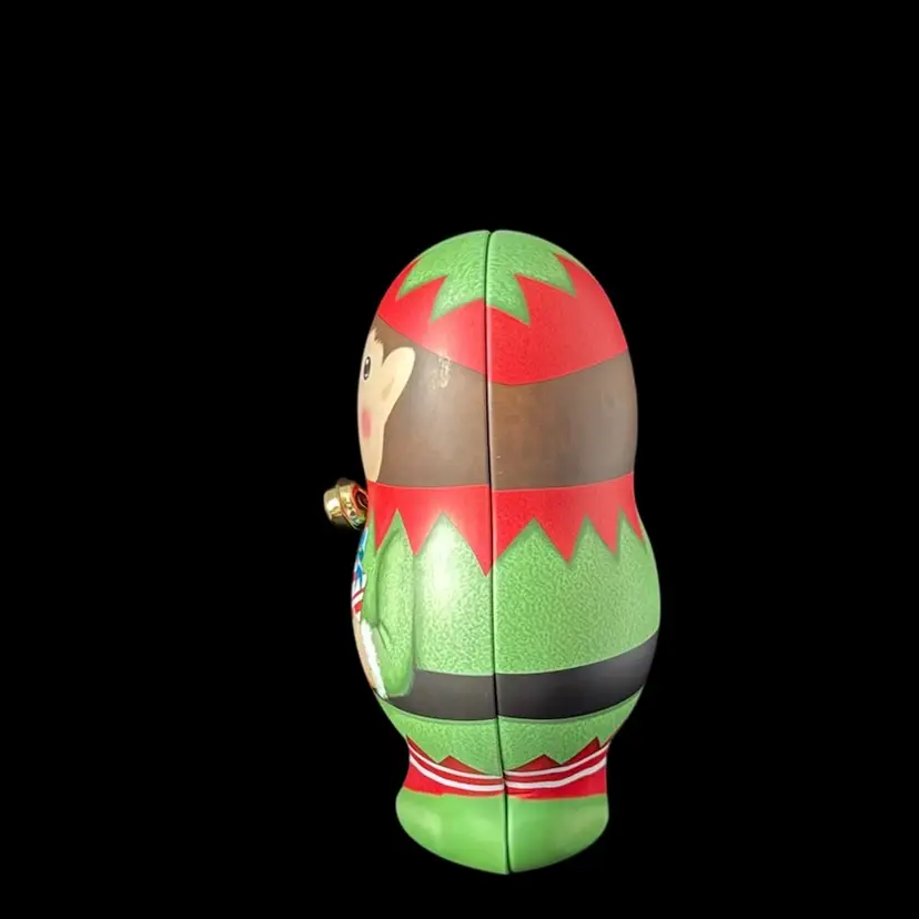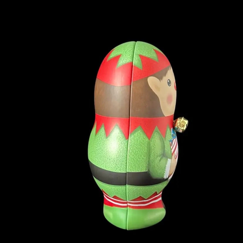 Get ready for the holiday season with this 3D Elf metal tin. Fill with gifts or candy. Standing at 9 inches tall, this free-standing tin is perfect for adding a festive touch under the tree or to any room.