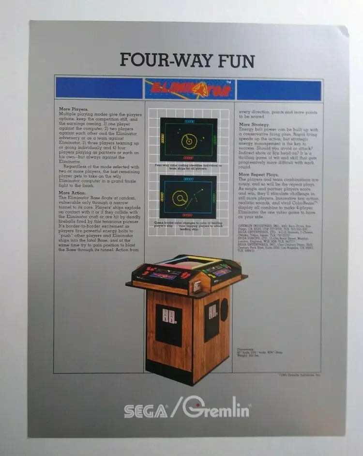 Arcade: Flyer Modified Item: No Country/Region of Manufacture: United States Original/Reproduction: Original Year: 1981 Game Title: Eliminator Brand: Gremlin Theme: Retro Gaming