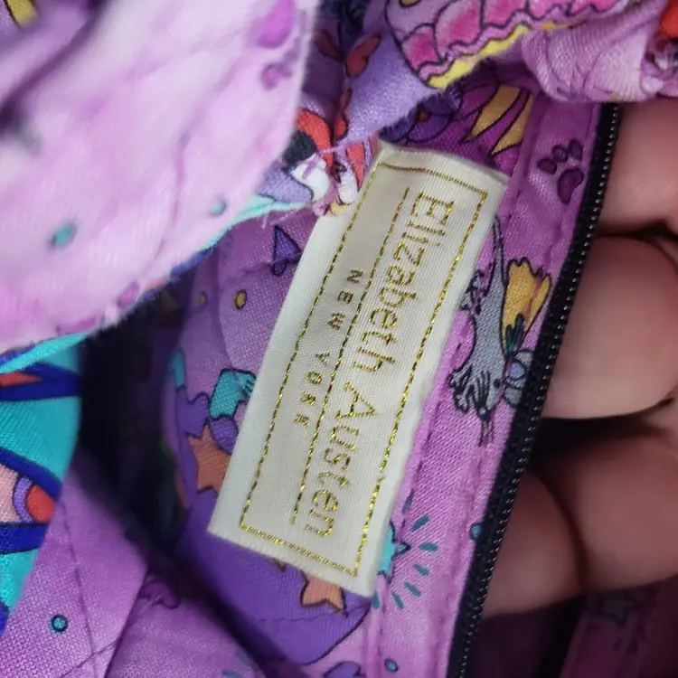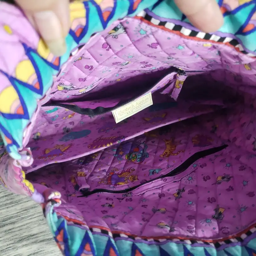 Brand: Elizabeth Austen New York Department: Women Size: Large Lining Material: Fabric Exterior Color: Purple Theme: Cat Style: Shoulder Bag Exterior Material: Fabric