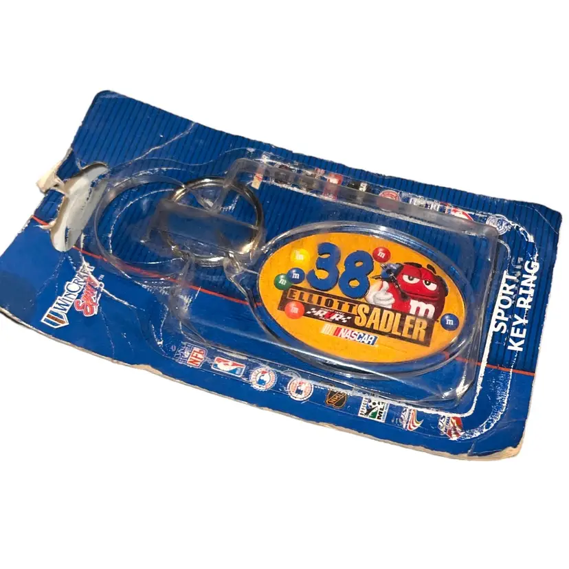 Show your love for NASCAR and Elliott Sadler with this officially licensed key ring from Wincraft. The yellow key fob features Sadler's #38 car and an M&M emblem, making it a perfect accessory for any fan of the sport. Measuring 2 x 3 inches, it is small enough to carry around with you everywhere you go.