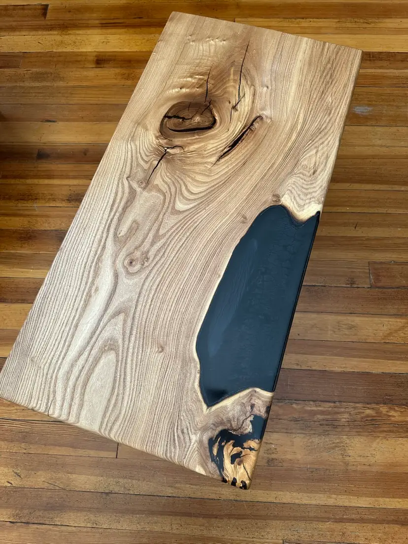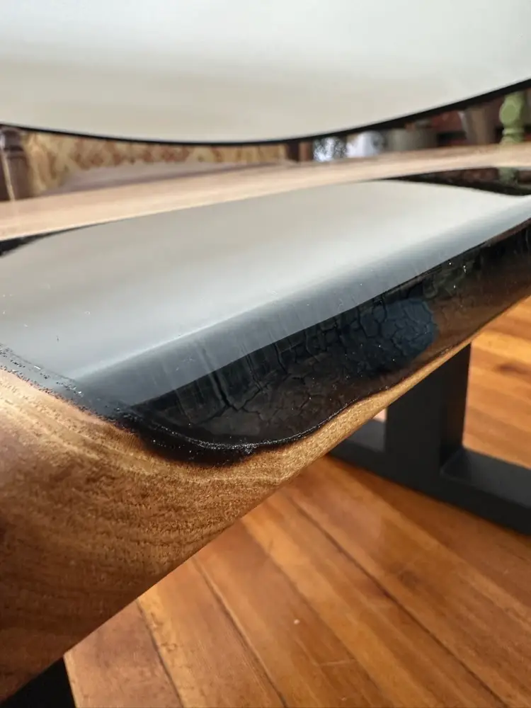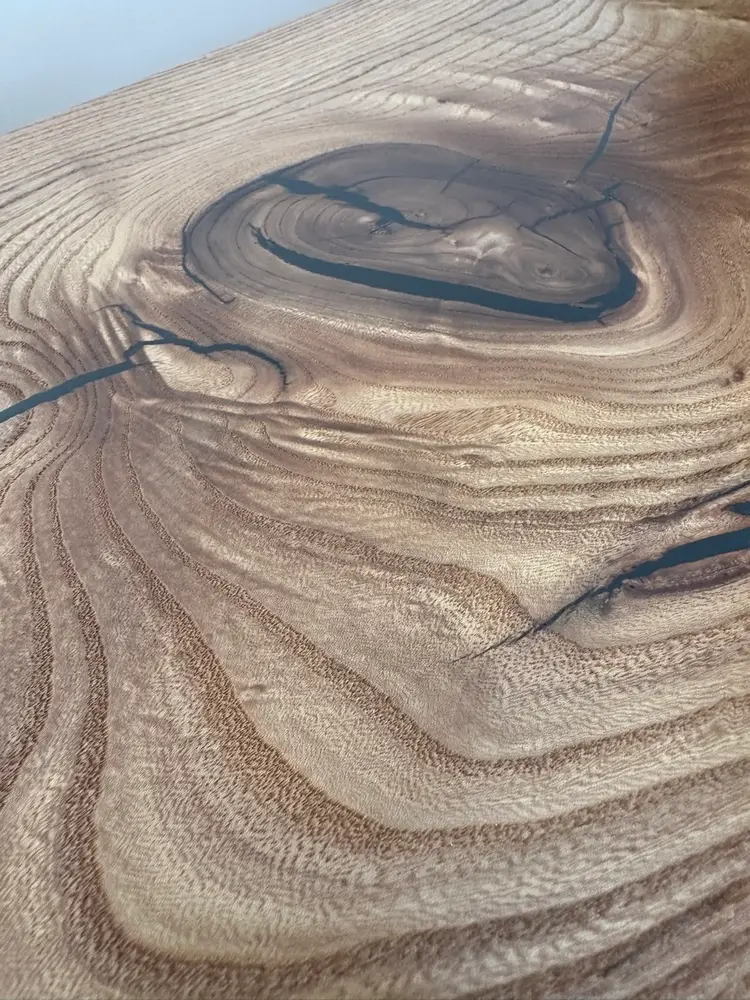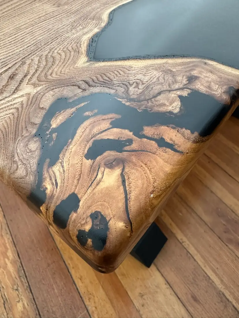 They say beauty rises from the ashes. Meet The Phoenix Table, a true 1-of-1 masterpiece designed for those who appreciate the beauty in the unconventional. We took self-milled Elm and leaned into its history, preserving a dramatic burnt section that becomes the undisputed star of the show. By filling the charred void with crystal-clear epoxy, we’ve frozen the wood's journey in time. The glass-like finish allows you to peer into every intricate, organic detail, transforming a functional surface into a "show-stopping" work of art.