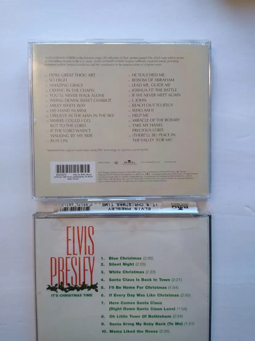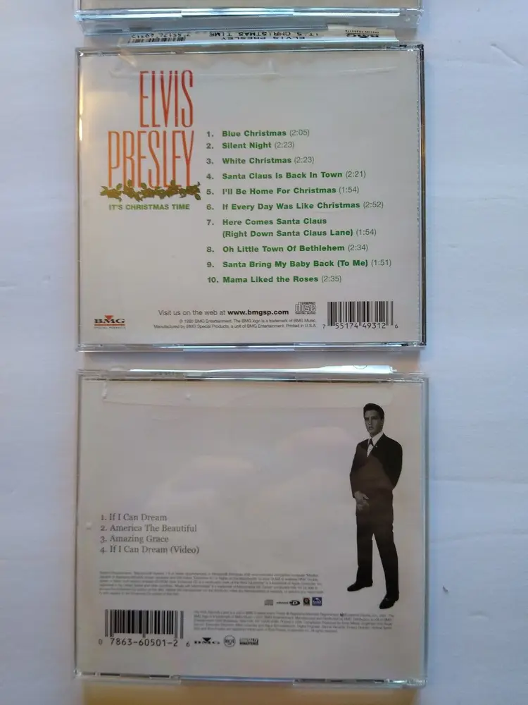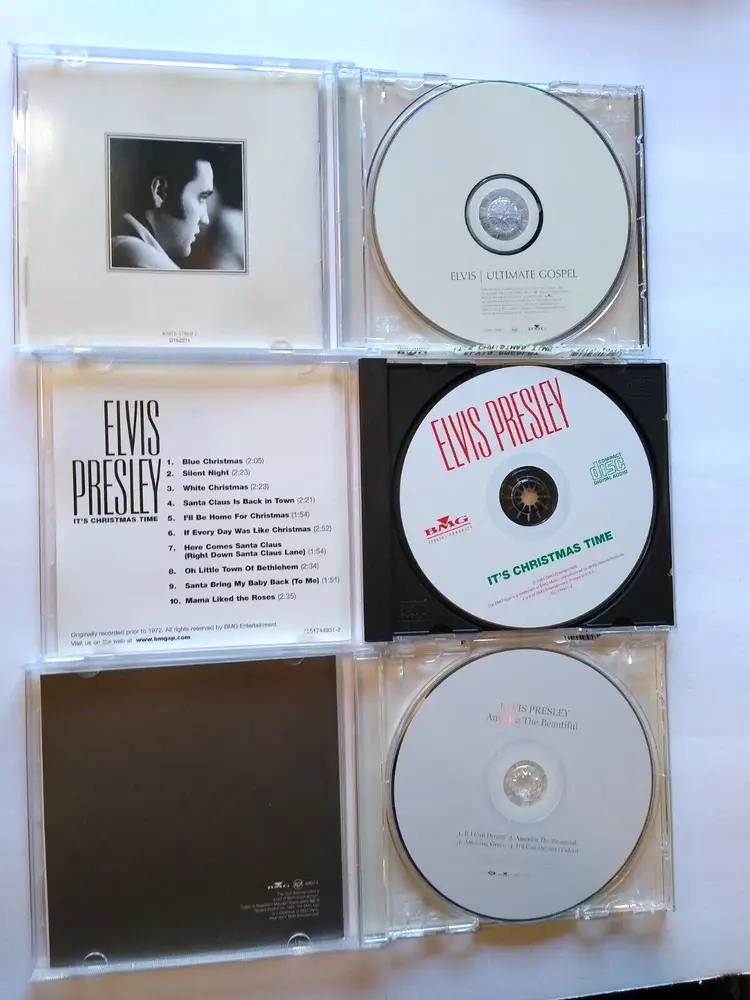 Artist: Elvis Presley, Elvis CD Grading: Very Good Plus (VG+) Record Label: BMG Release Title: It's Christmas Time Case Type: Jewel Case: Standard Bundle Description: Lot Of 3 CDs Color: Silver Custom Bundle: Yes Case Condition: Very Good Plus (VG+) Inlay Condition: Very Good Plus (VG+) Edition: Remastered Type: Album Format: CD Language: English Release Year: 1985 Era: 1990s Style: 1950s, 1960s Features: Original Cover Genre: Gospel, Holiday, Jazz, Rock 'n' Roll Country/Region of Manufacture: United States