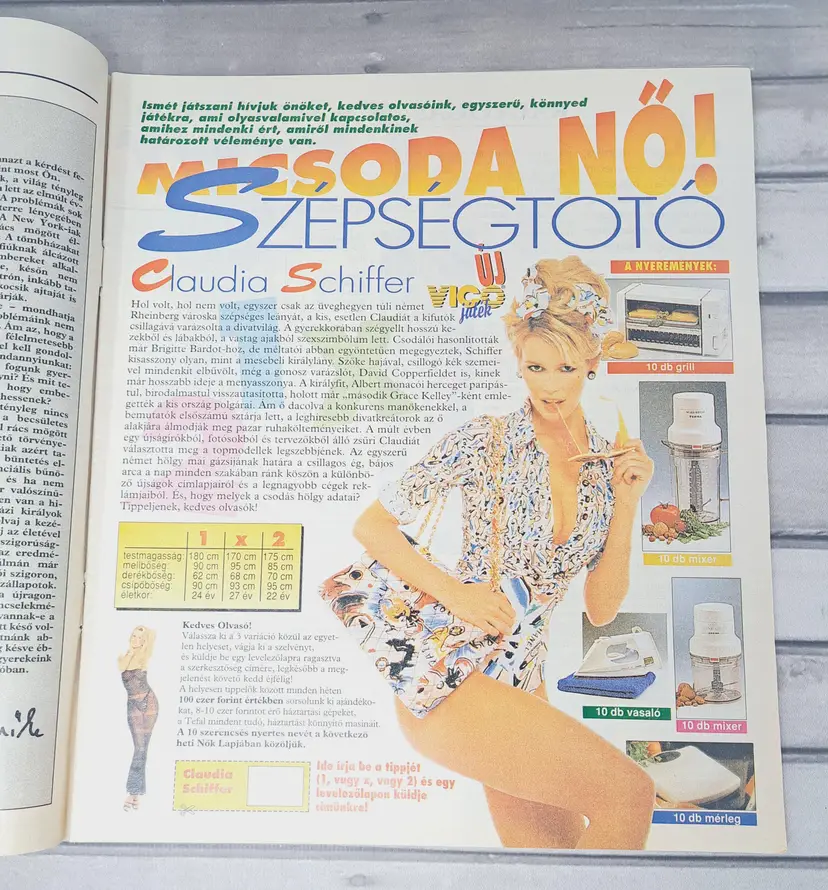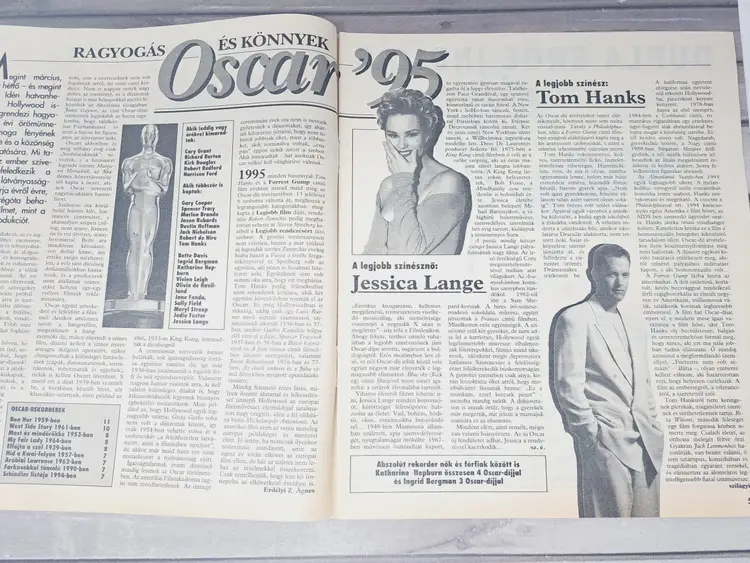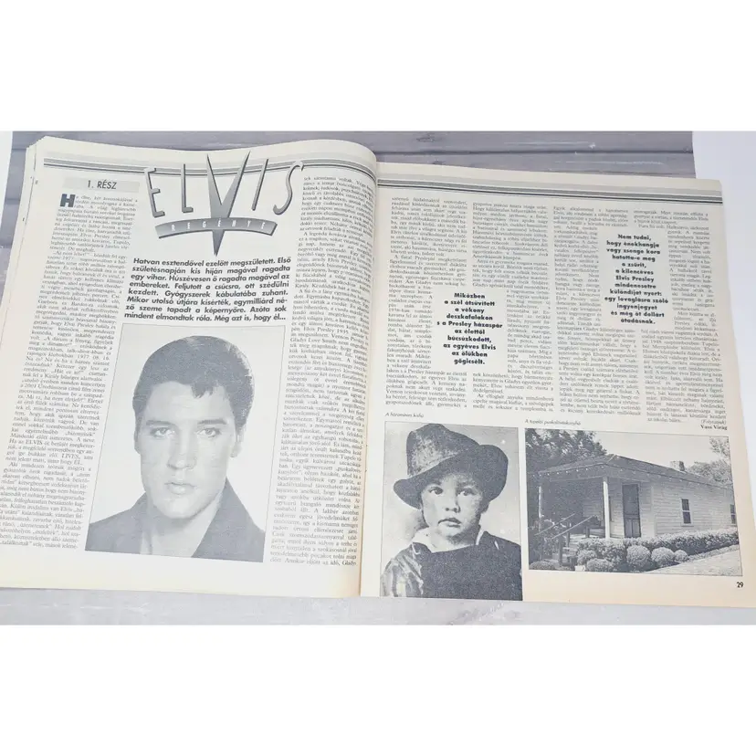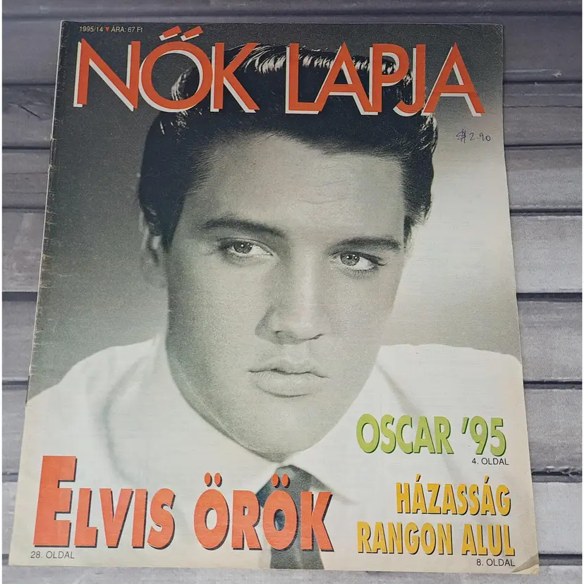 A Hungarian women's magazine since 1949. The front page is a black and white photo of Elvis Presely, with a further photo and article inside. There is also an article and photo of Claudia Schiffer, Tom Hanks and the '95 Oscars.