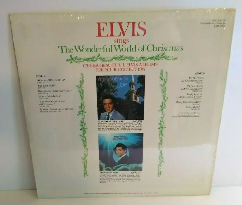 Custom Bundle: No Record Grading: Mint (M) Speed: 33 RPM California Prop 65 Warning: No Format: Record Type: LP Record Label: RCA Color: Black MPN: ANL1-1936 Edition: Reissue Genre: Holiday Occasion: Christmas Era: 1970s Artist: Elvis Presley Country/Region of Manufacture: United States Style: Christmas, 1970s Material: Vinyl Record Size: 12" Features: Sealed Release Title: Elvis Sings The Wonderful World Of Christmas Release Year: 1975 Language: English Modified Item: No Duration: LP Sleeve Grading: Near Mint (NM or M-) Inlay Condition: Very Good Plus (VG+) Case Type: Cardboard Sleeve