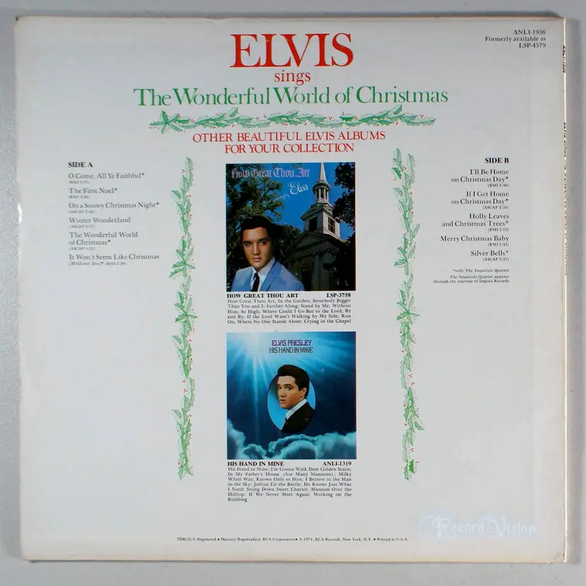 Elvis sings The Wonderful World Of Christmas was Elvis Presley's second and final Christmas album. Merry Christmas Baby/O Come All Ye Faithful was released as a single. This album was a big seller and topped the Billboard Holiday Albums Chart. Over the years, it has become a perennial favorite. It has been certified 3x Platinum by the RIAA.