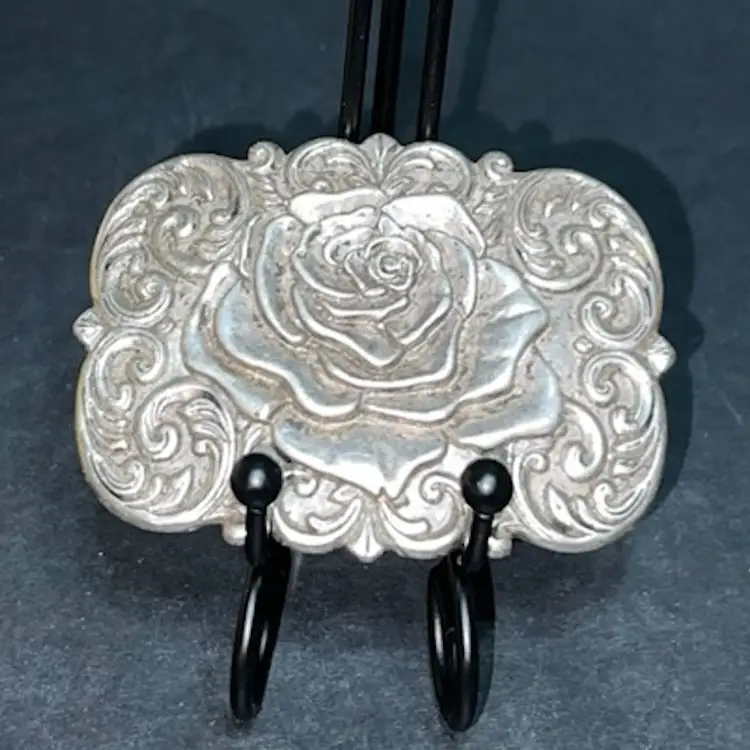 MARKDOWN! Embossed Belt Buckle Rose Motif ~3.25” x 2.5”