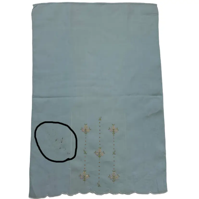 A few marks on the back, do not show through on the front, measures approx. 13.5” x 20”, cotton.