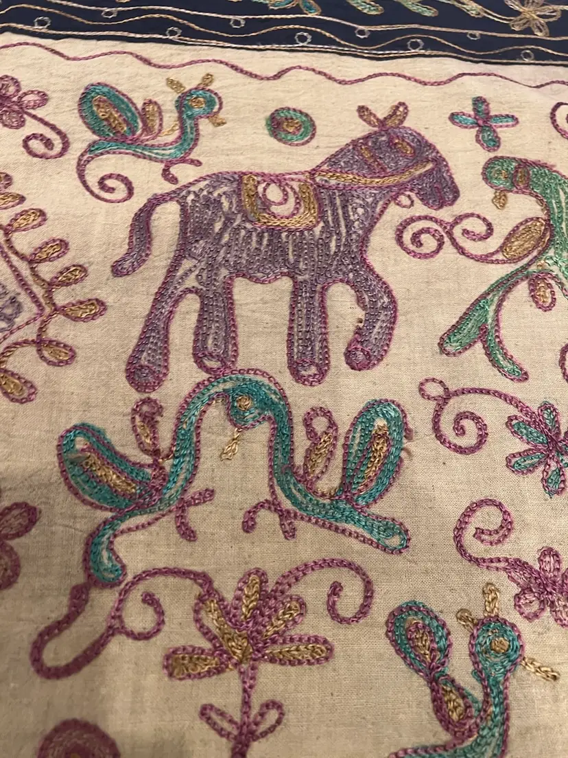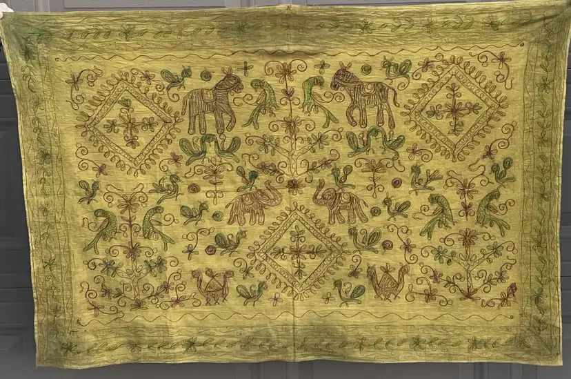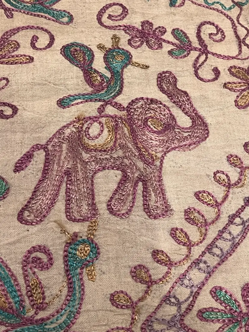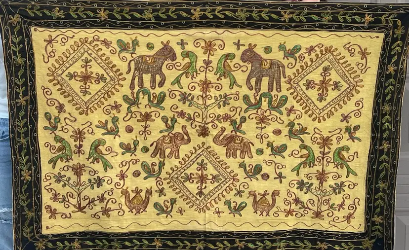 Embroidered Elephant Tapestry Wall Hanging From Agra India 33” X 49”