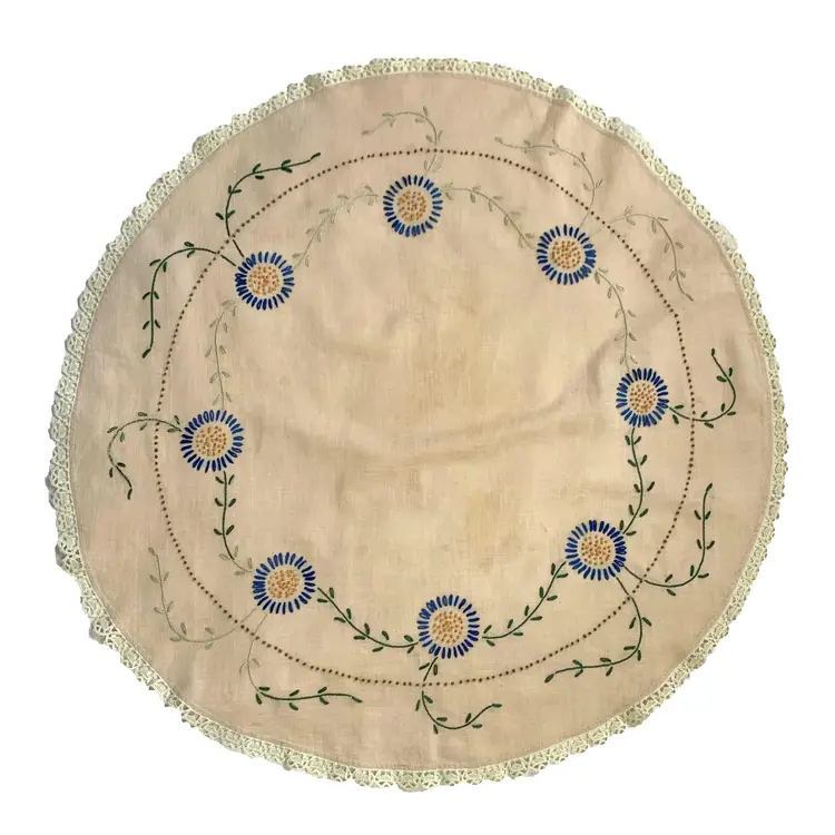 Some staining in the center, measures approx. 32” in diameter.