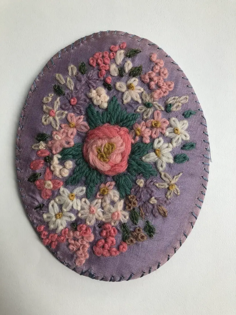 Vintage(?) embroidered flowers, no signature or markings. approx. 4.25inX3.25in