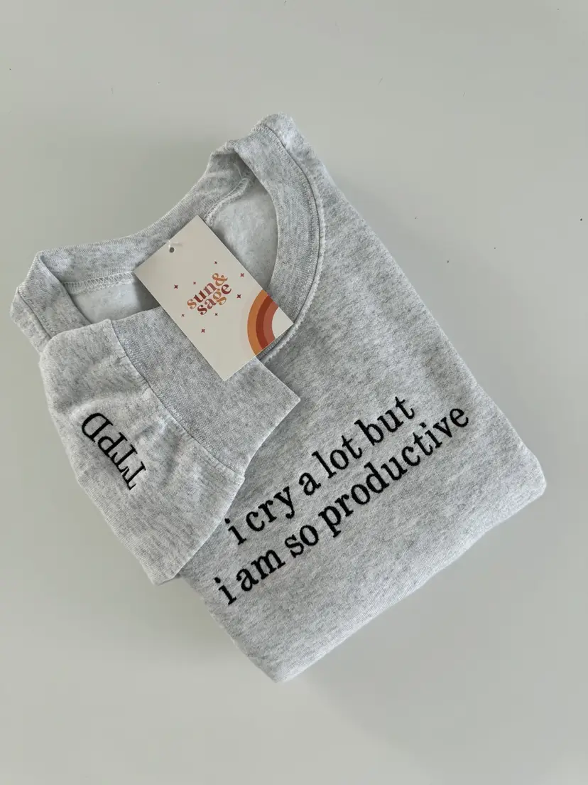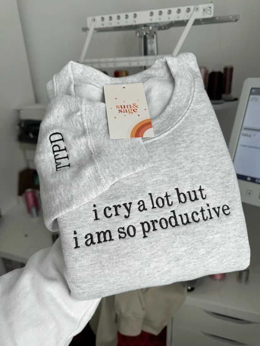 This sweatshirt comes in color Ash Grey with black embroidery. The sleeve will be embroidered with TTPD!