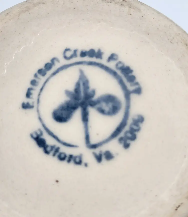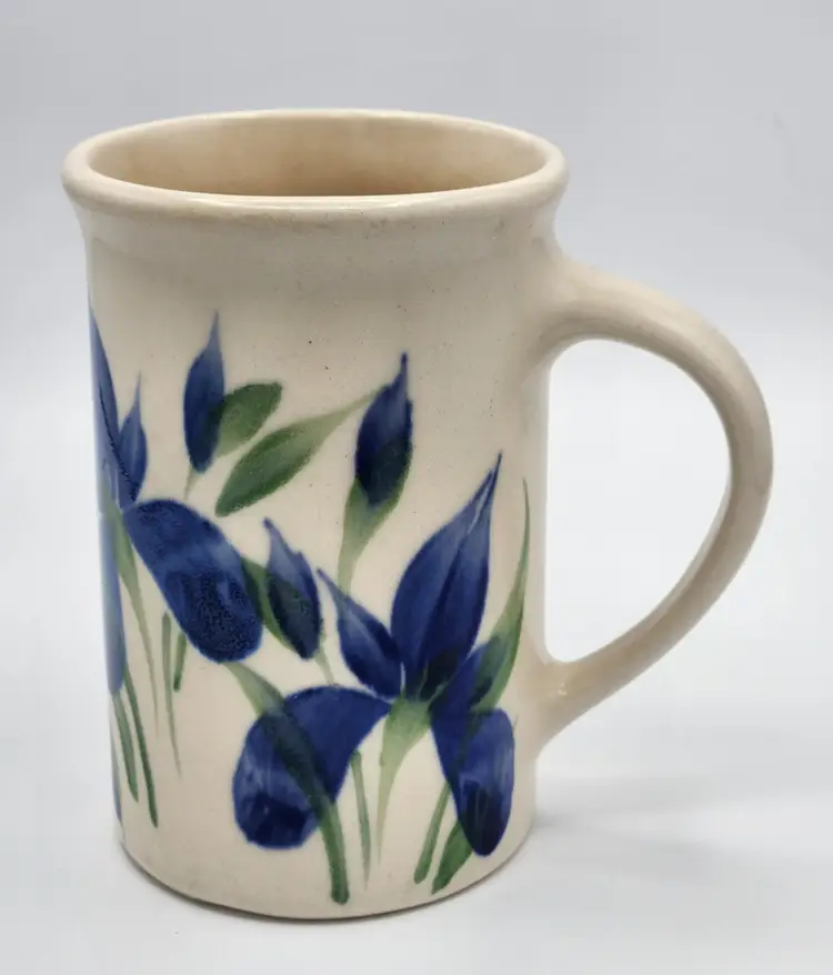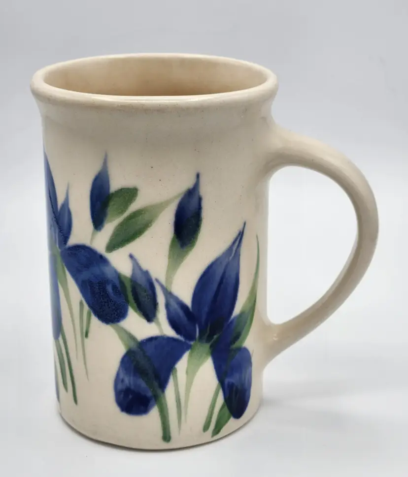Emerson Creek Pottery Field of Iris Signature 16 oz coffee mug. Made in Virginia. Has staining on the inside.