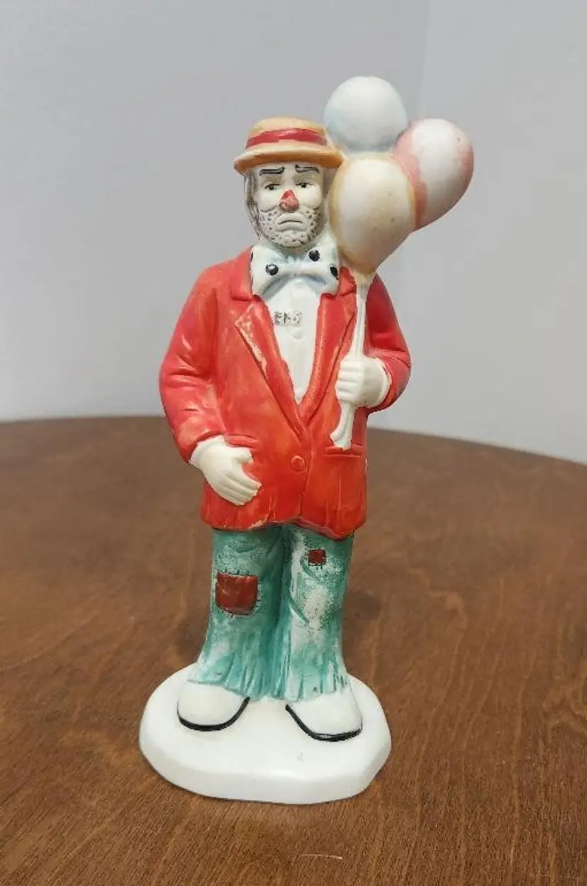 6" tall Emmett Kelly Jr. " Weary Willie" clown figurine holding balloons From the Flambro Collection Hobo Clown, hand painted porcelain