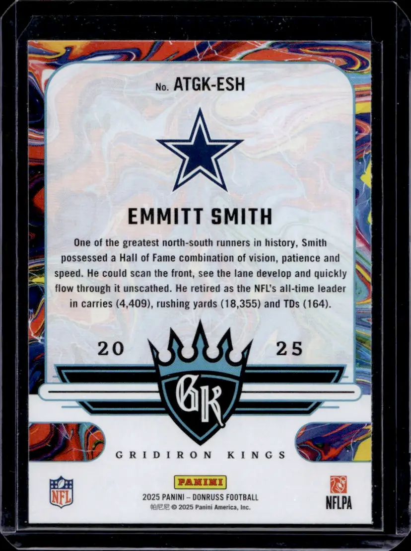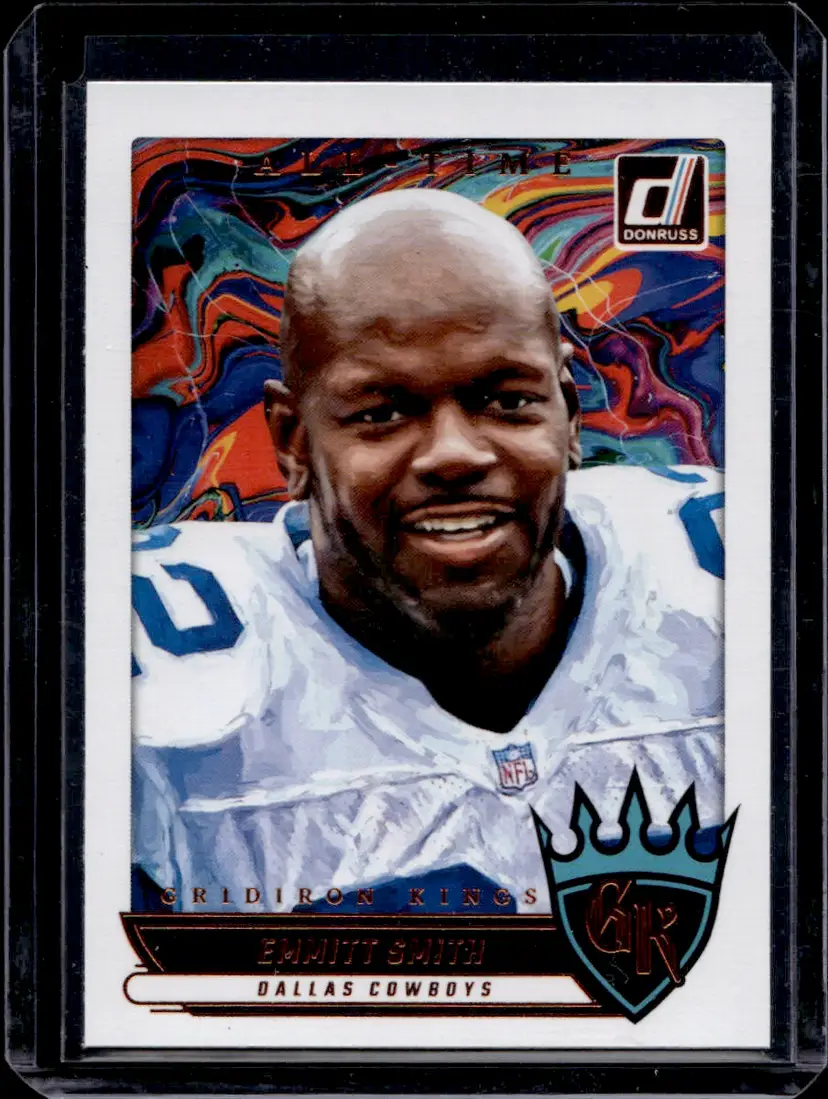 Add this Emmitt Smith card from the Donruss Gridiron Kings series to your collection. A perfect piece for Dallas Cowboys fans and football card enthusiasts.