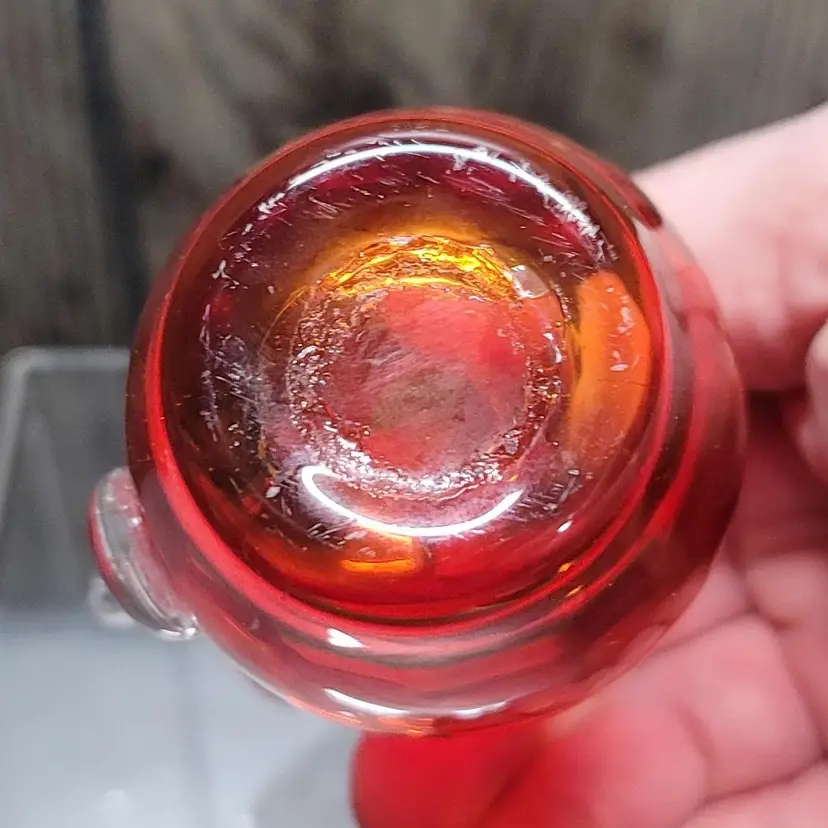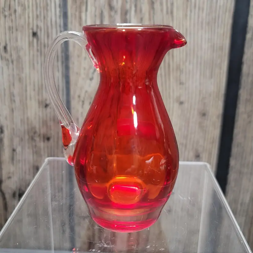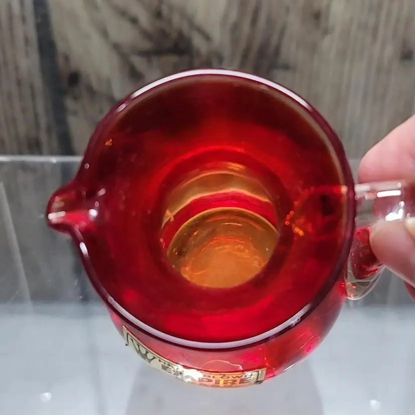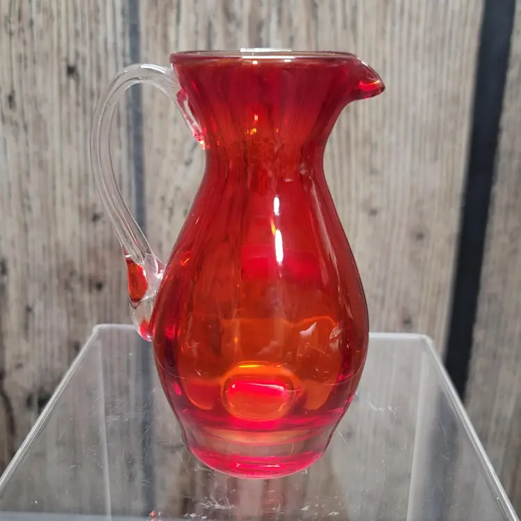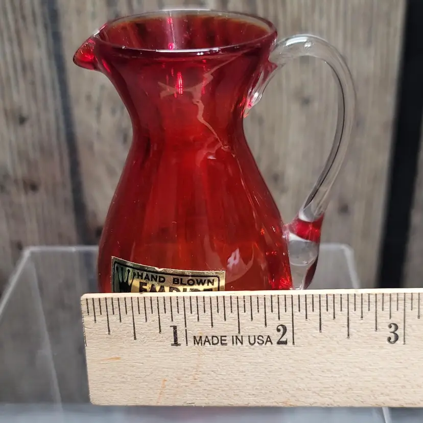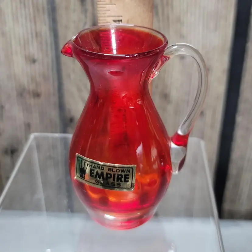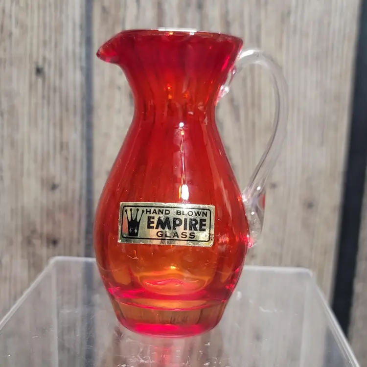 This little Empire blown glass pitcher/creamer is in excellent condition with the original sticker. Measures about 4" tall and 2" wide. No damage to note. Will be securely packed!!
