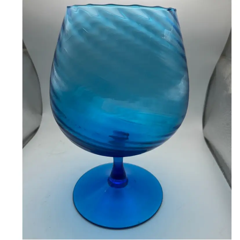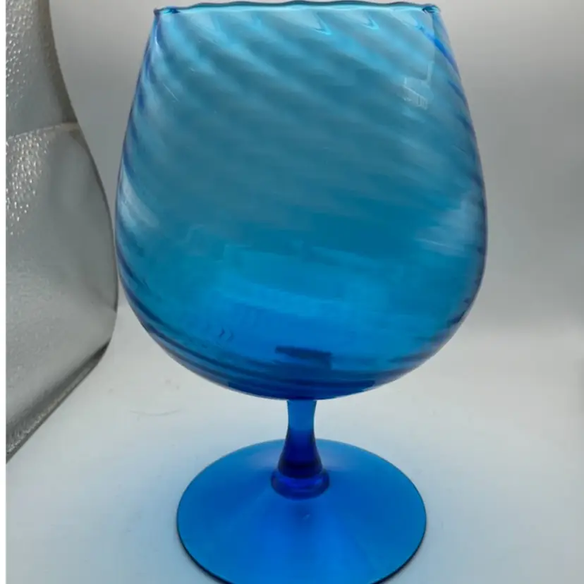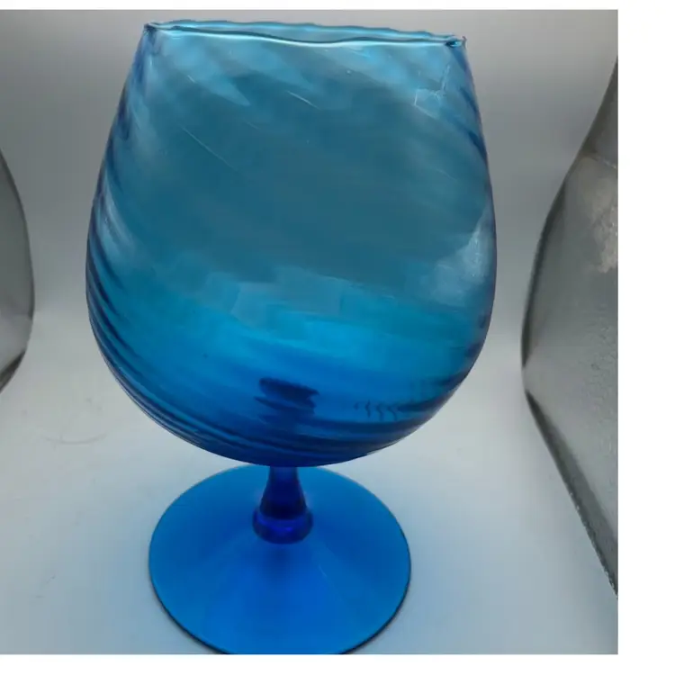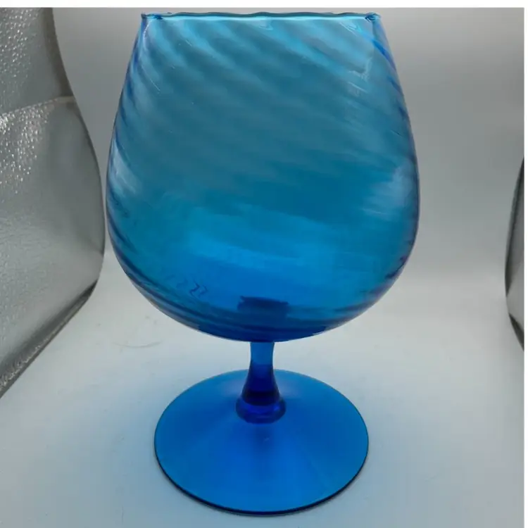 Beautiful Aqua Teal Blue pre-owned Empoli Brandy snifter in excellent pre-owned condition. Very thin blown glass with optical illusion. Fine piece of art great for display on back drop of bar. Approx 8x 5