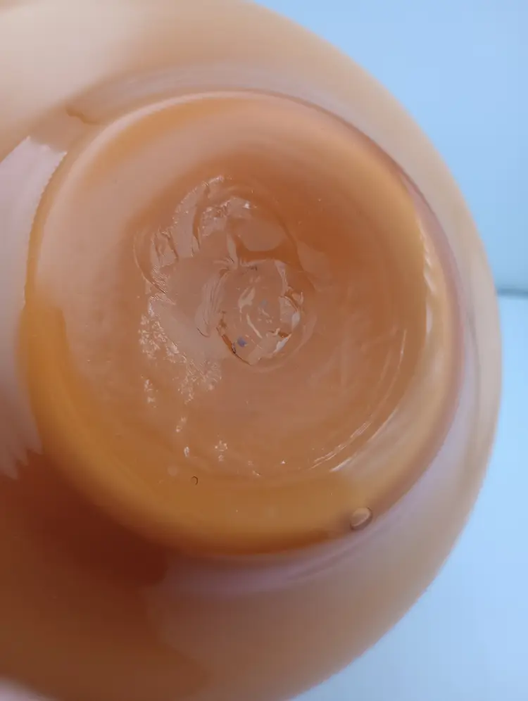 This beauty is a MCM Empoli classic -- a double handled vase in cased amber/butterscotch. It's simply yummy. It's 9.25" tall and about 7.5" across and in spectacular condition with no noted flaws.