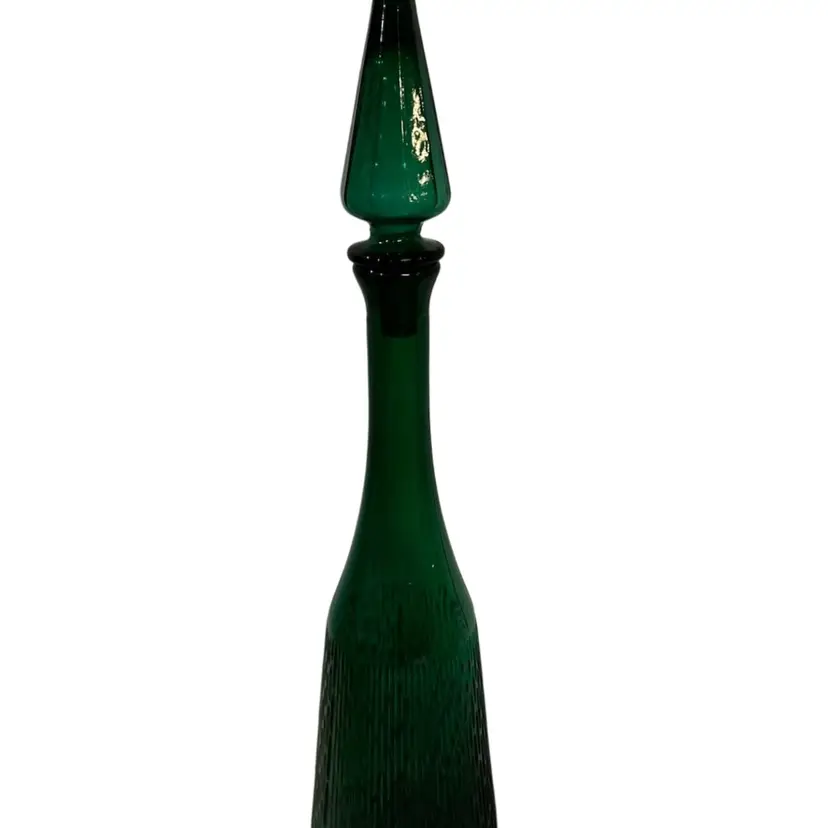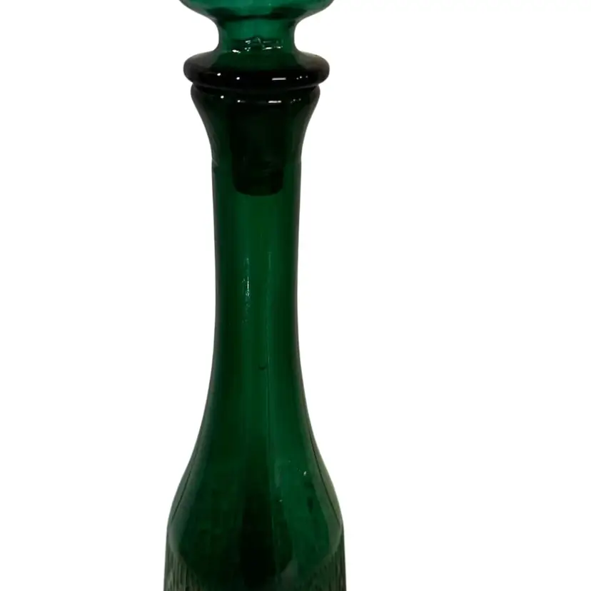 Empoli Green glass Decanter small possible chip at tip of stopper but its smooth (see pic)