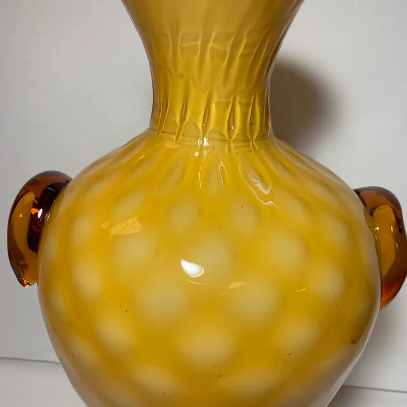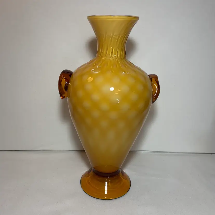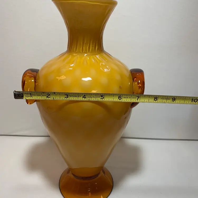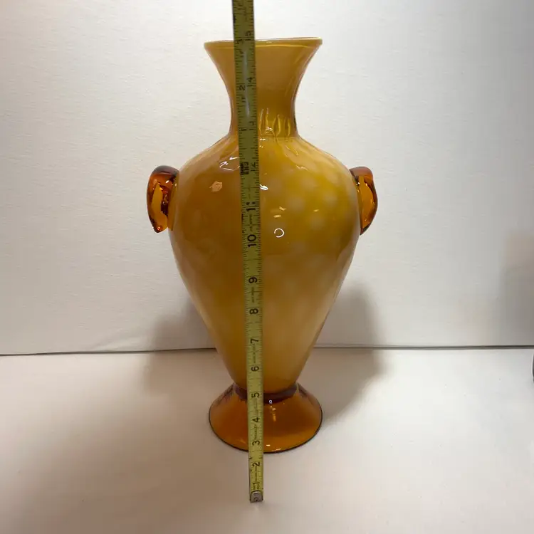 Beautiful condition, no cracks or breaks, no damage. 15.25" x 8.75" x 7", it's 5.25" at the base and 4" at the top opening. This wonderful piece weighs 4 lbs 3.8 oz. There are a few internal bubbles, one tic. The pontil is rough and very nice and vintage. This is a beautiful centerpiece vase. Weight is 4 lbs