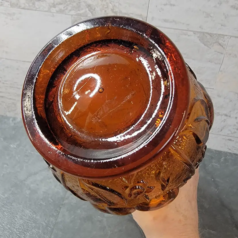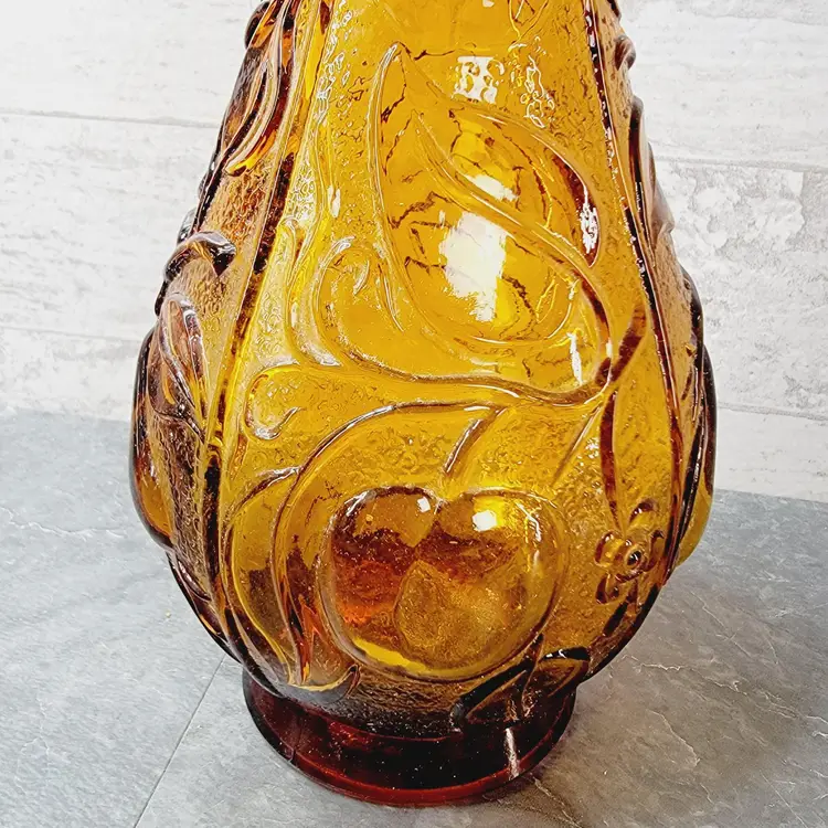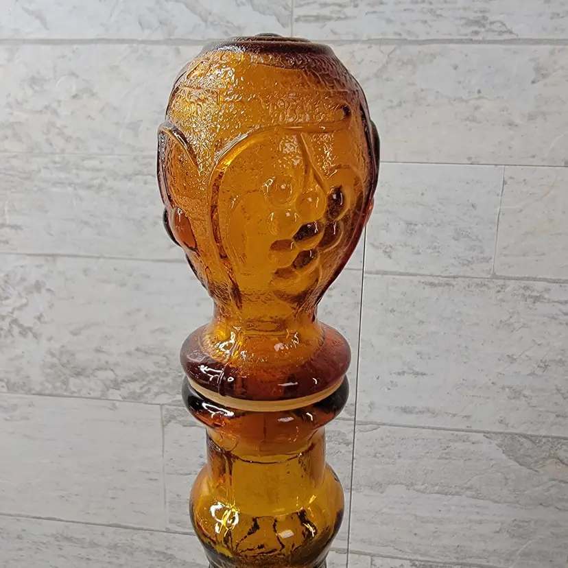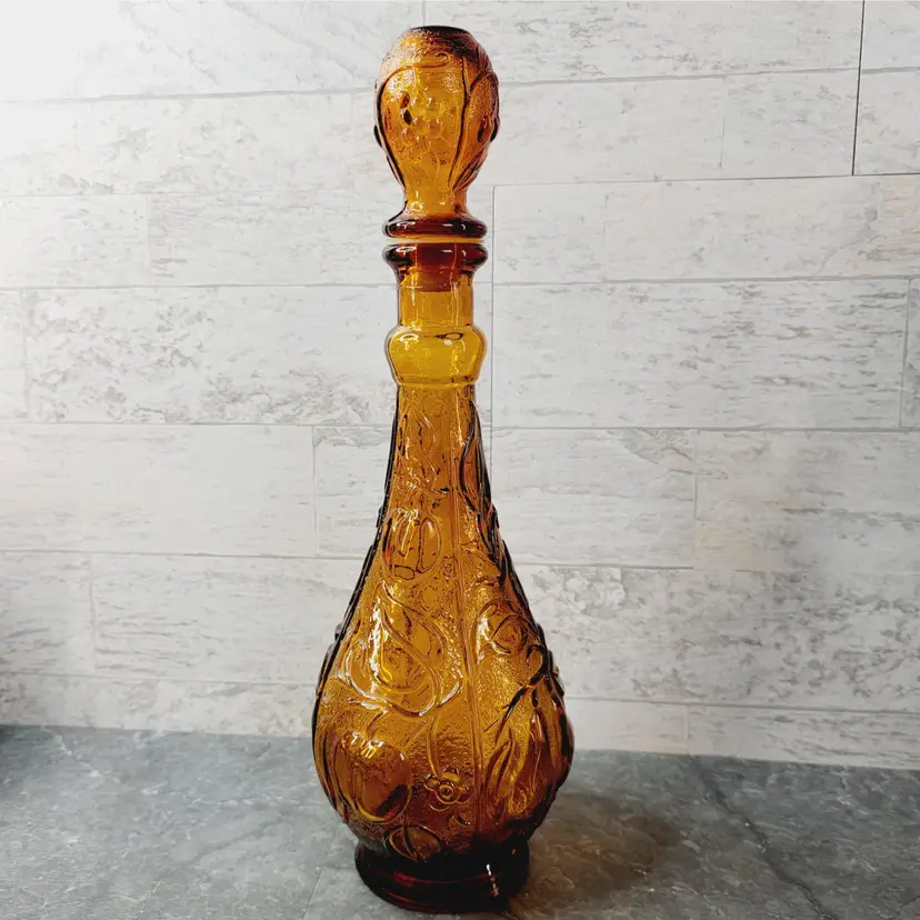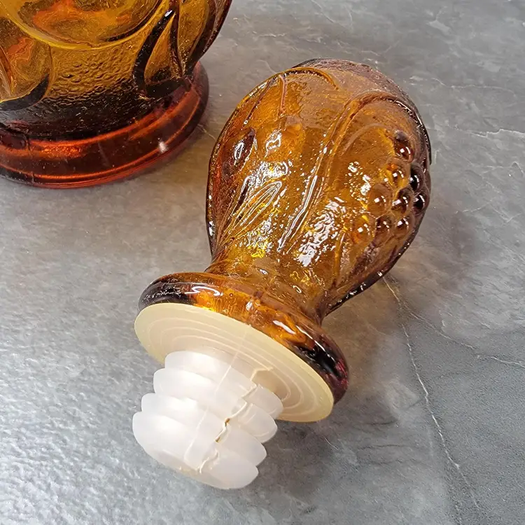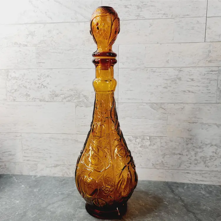 14" tall. No chips of cracks. Stopper has a split in the plastic insert. See photos.