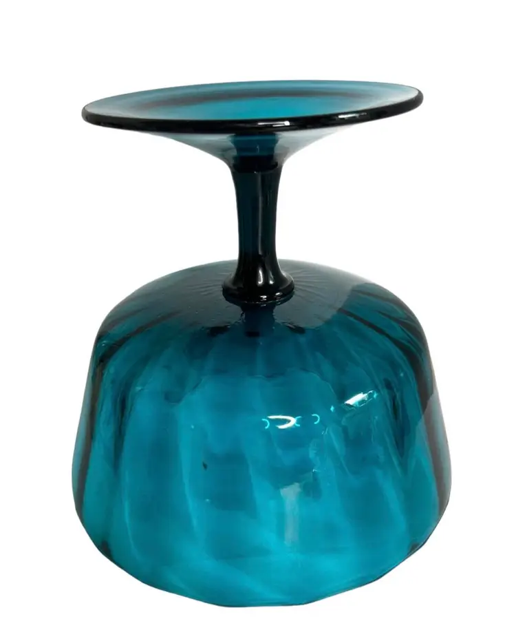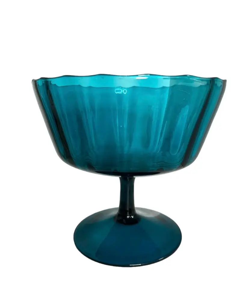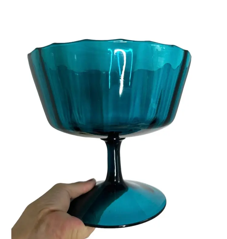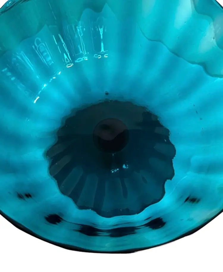 Empoli optic rib turquoise aqua pedestal bowl/large compote bowl No chips or cracks. Age related wear to be expected