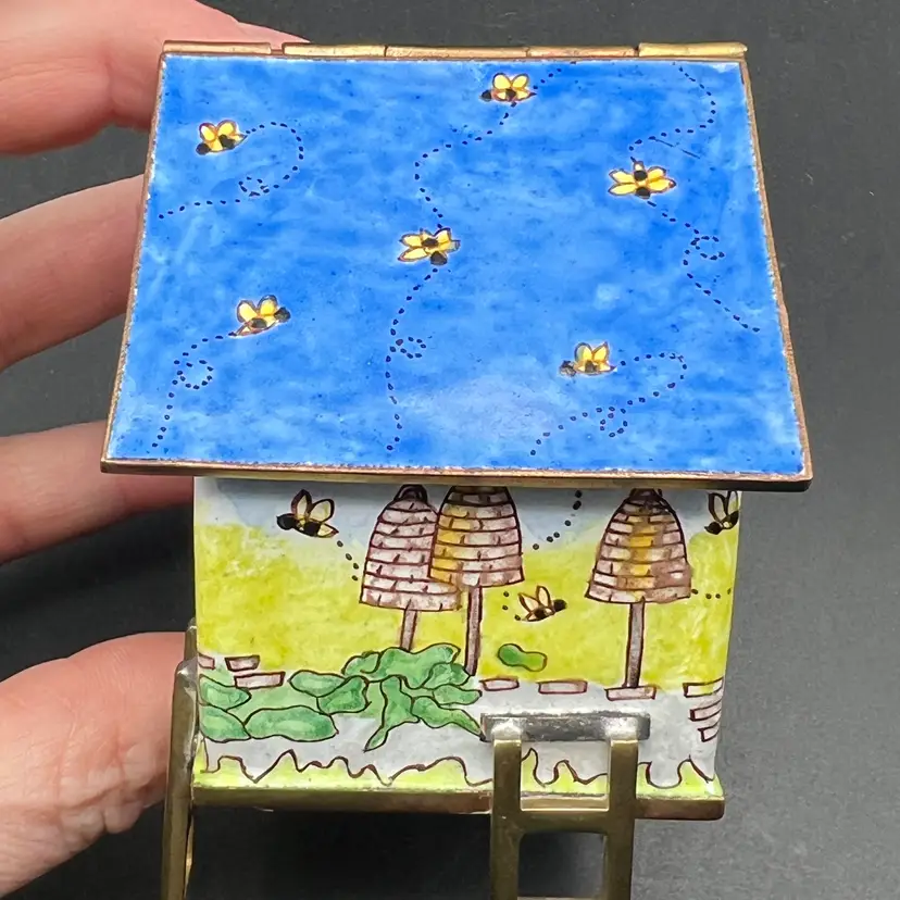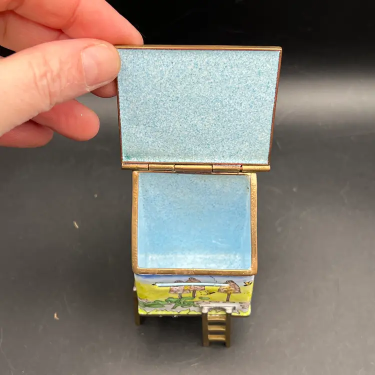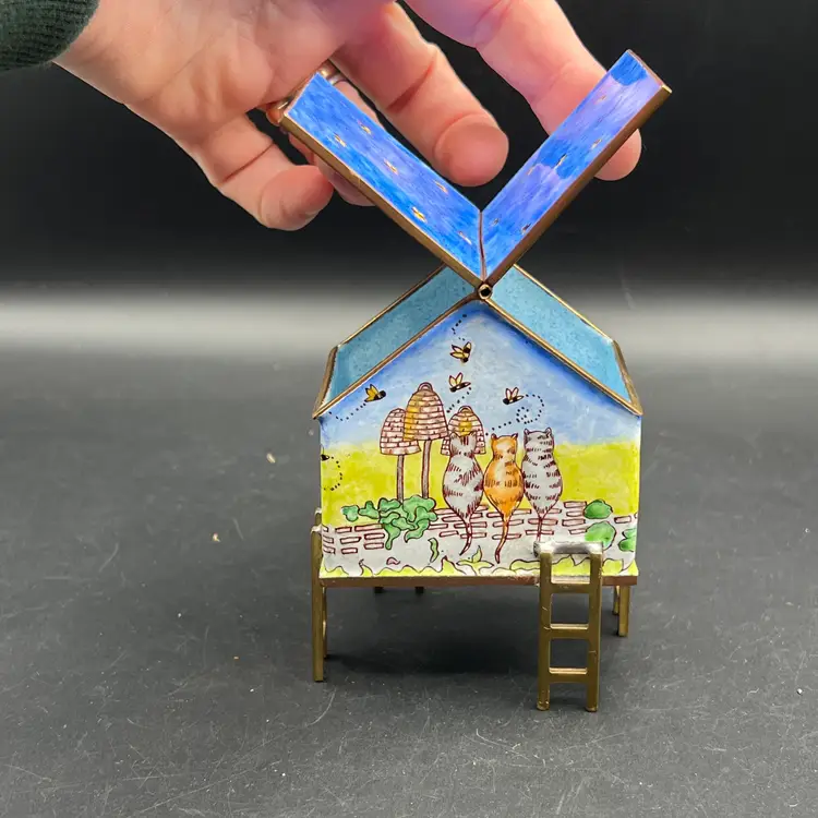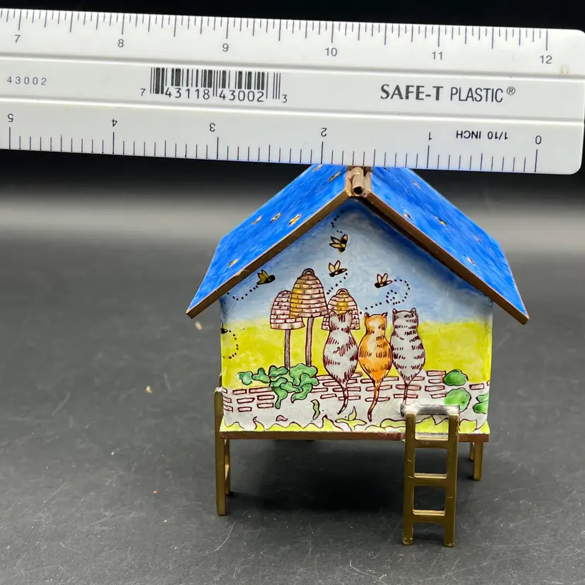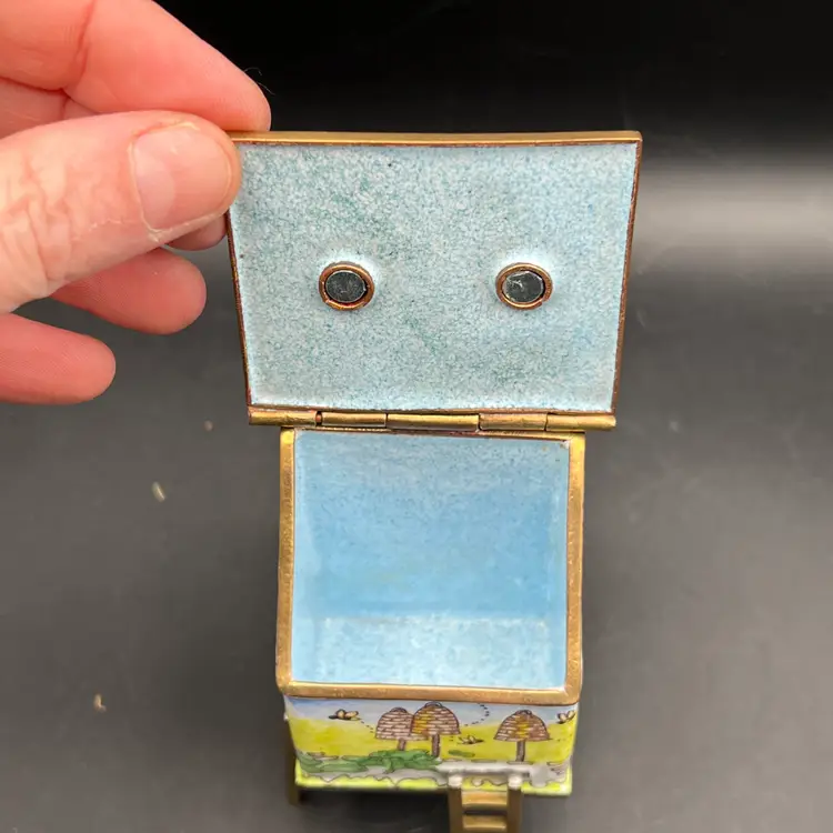 Empress Arts Stamp Holder Honey Bee Hive Cats Trinket Box 2 Section Lid Enamel Very cute additional to your office desk. Condition: Preowned, great condition