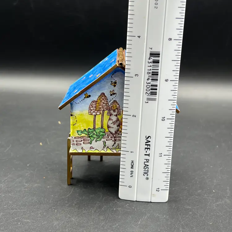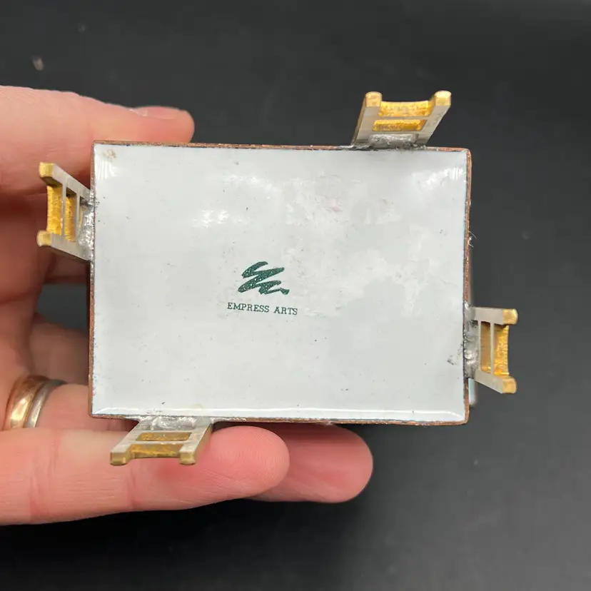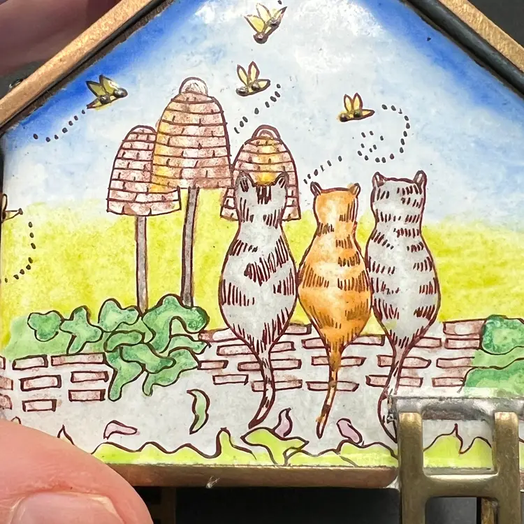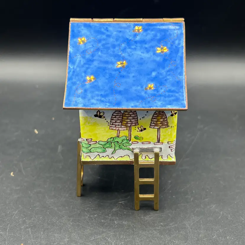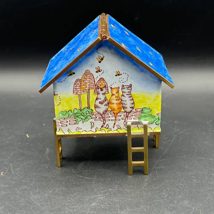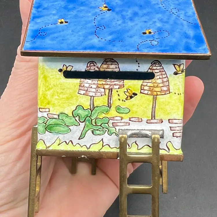 Empress Arts Stamp Holder Honey Bee Hive Cats Trinket Box 2 Section Lid Enamel Very cute additional to your office desk. Condition: Preowned, great condition