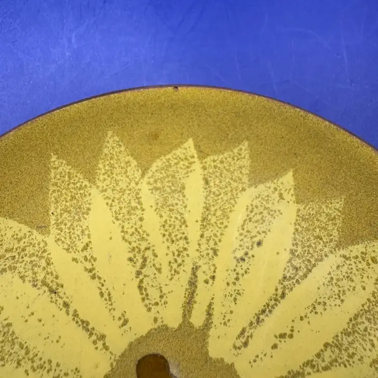 Enamel on Copper Trinket Dish Bovano of Cheshire Conn Sunflower design Measures 3 5/8 inches Tiny chip on rim see last photo