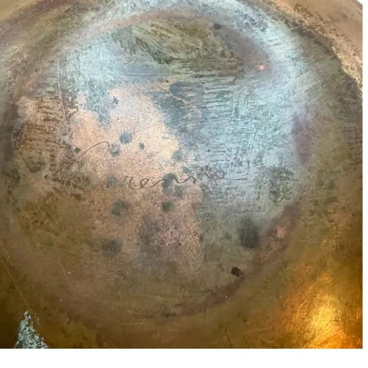 Enamel On Copper Dish 7” Diameter Artisan Signed Red & Green. In very good condition