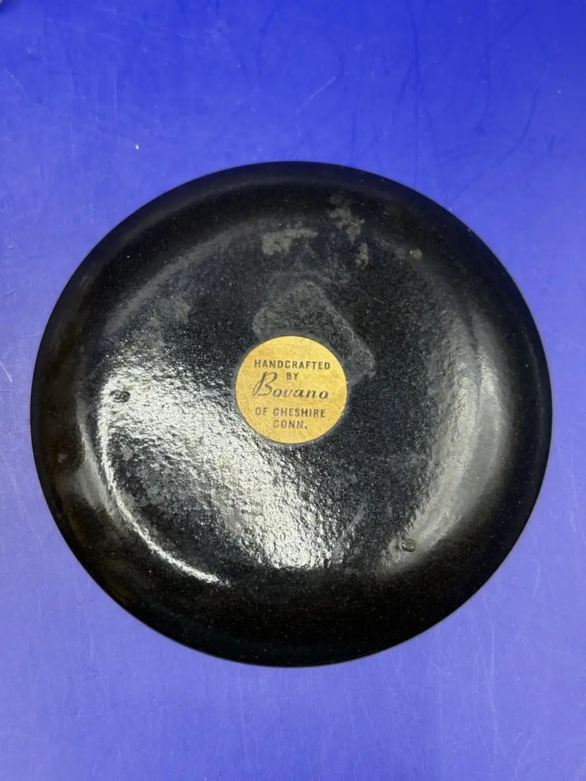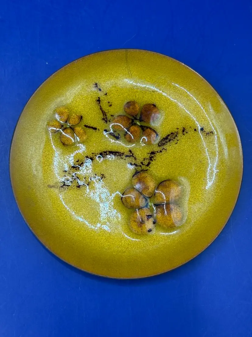 Enamel on Copper Trinket Dish Bovano of Cheshire Conn Flower design Measures 3 5/8 inches Some crazing near flowers