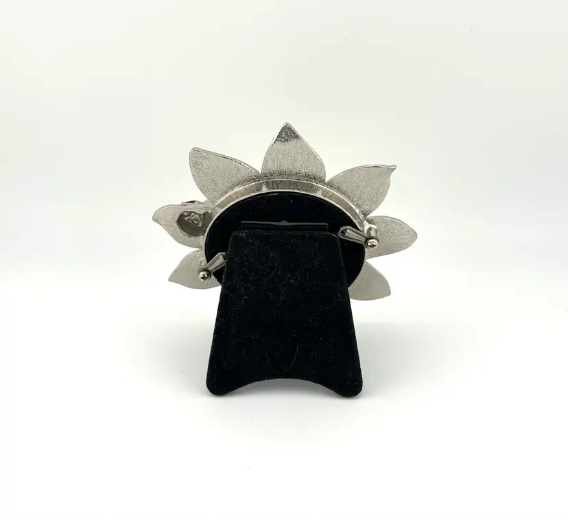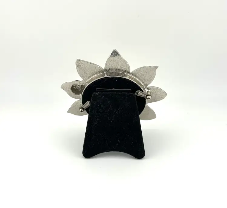 Will hold a 1.75” round photo. More modern piece. Silver tone.