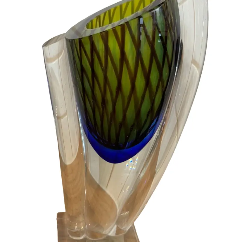 This beautiful Art Glass/Murano? vase is a stunning addition to any home decor. With its elegant design and intricate netting details, it is sure to catch the eye of anyone who enters the room. Crafted by skilled artisans, this vase is a true work of art and a testament to the rich tradition of Murano glassmaking.