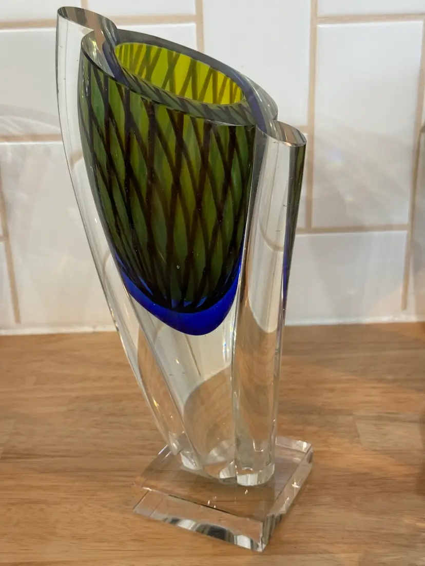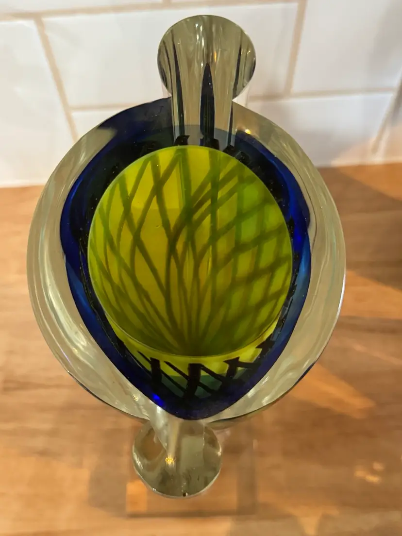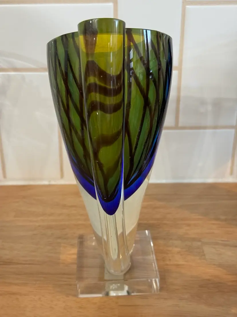 Whether you use it to display fresh flowers or as a standalone piece, this vase is sure to make a statement in any setting. Its timeless beauty and quality craftsmanship ensure that it will be cherished for years to come. Don't miss the opportunity to own this exquisite piece of Art glassware.