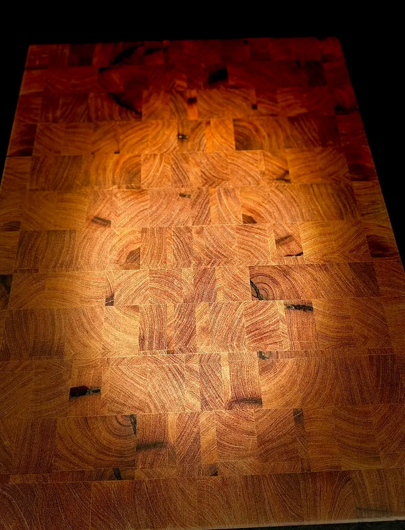 With proper care and maintenance, an end-grain board will withstand years of daily use while remaining gentle on your knives and limiting or eliminating scarring. Whether you’re drawn to a classic pattern board, elegant book-matched design, traditional brick layout, butcher block style, single-species or multi-species composition, or my personal favorite—the Chaotic cutting board—each piece is handcrafted to be both functional and visually striking. A custom board like this naturally becomes the centerpiece of any kitchen.