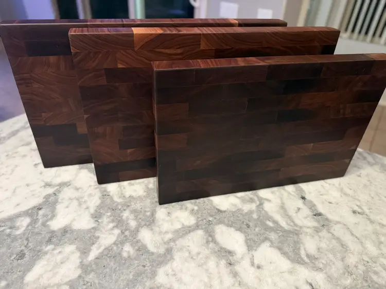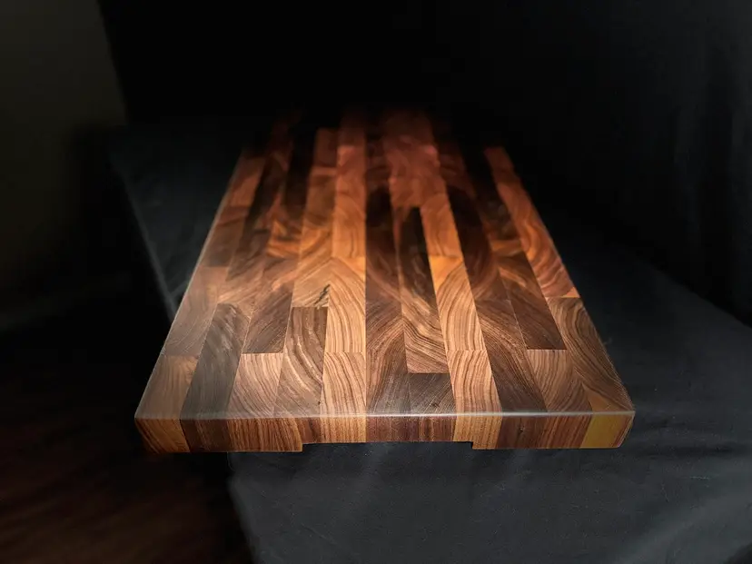 All of my custom end-grain cutting boards are thoughtfully designed and handcrafted to bring your vision to life. End-grain construction showcases the natural beauty of the wood in a way no other style can, creating distinctive grain patterns that ensure every board is truly one-of-a-kind. When paired with meticulous attention to detail and expert craftsmanship, these boards become more than kitchen tools—they are heirloom-quality pieces meant to be enjoyed and passed down for generations.