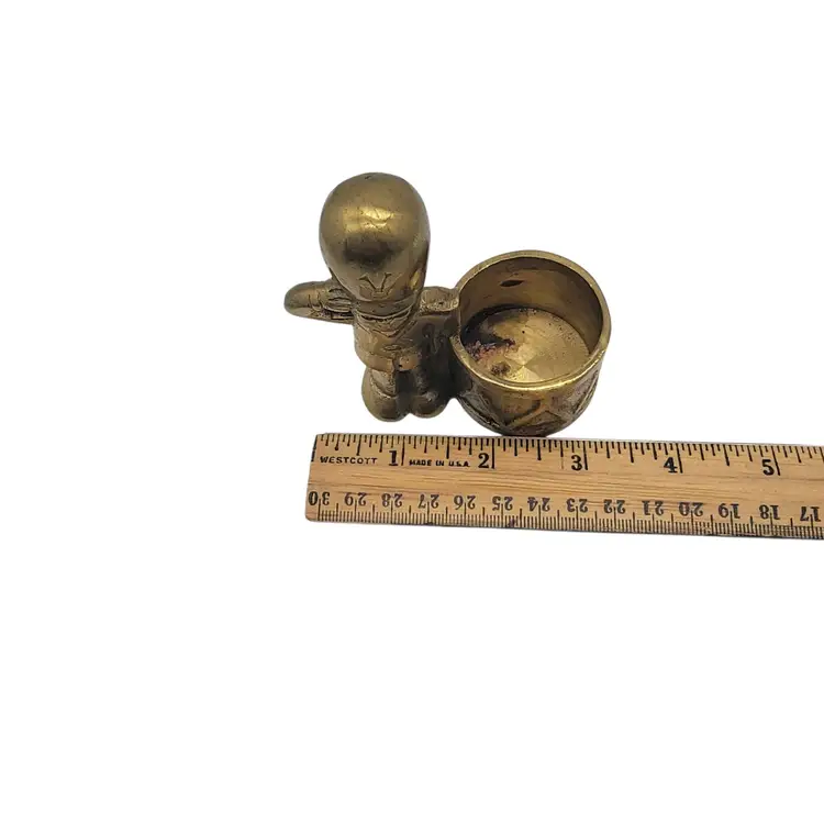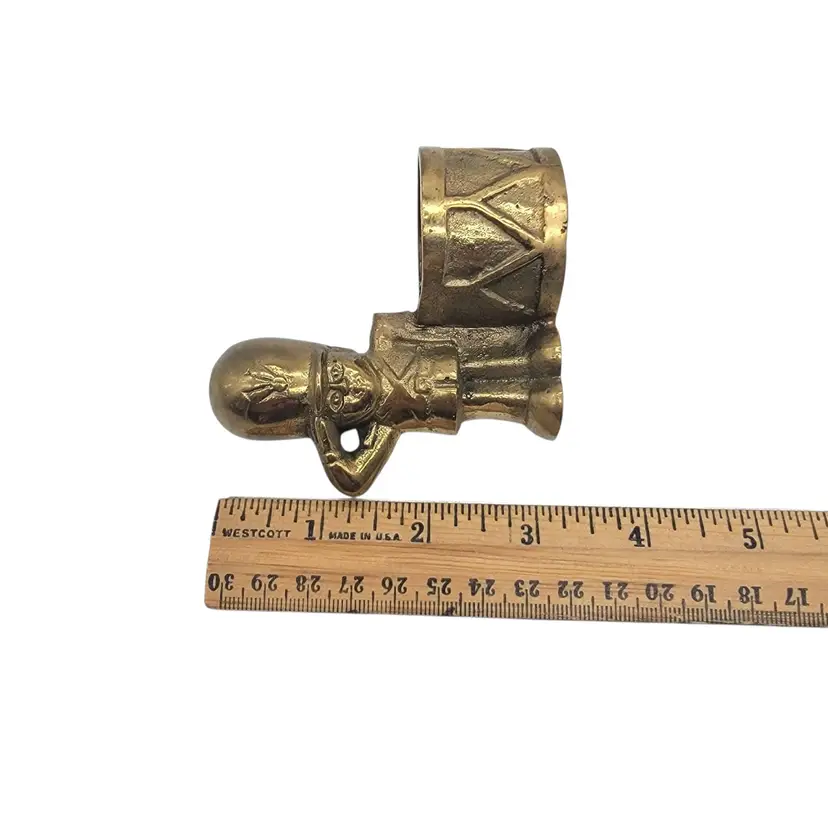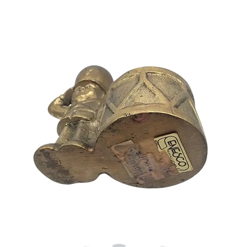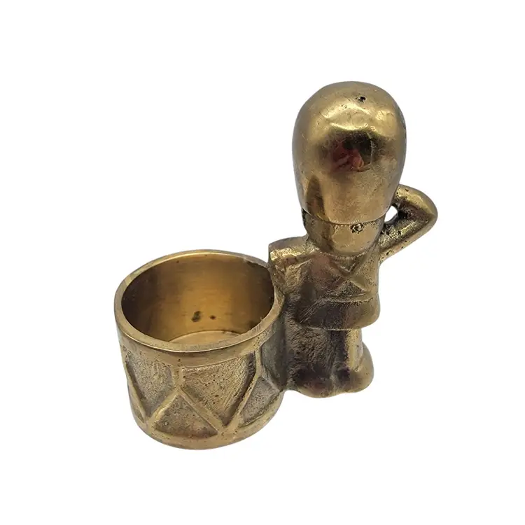 • Brass construction ensures durability • Compact size for easy placement • Unique design with soldier and drum • Vintage collectible item • Suitable for small candles
