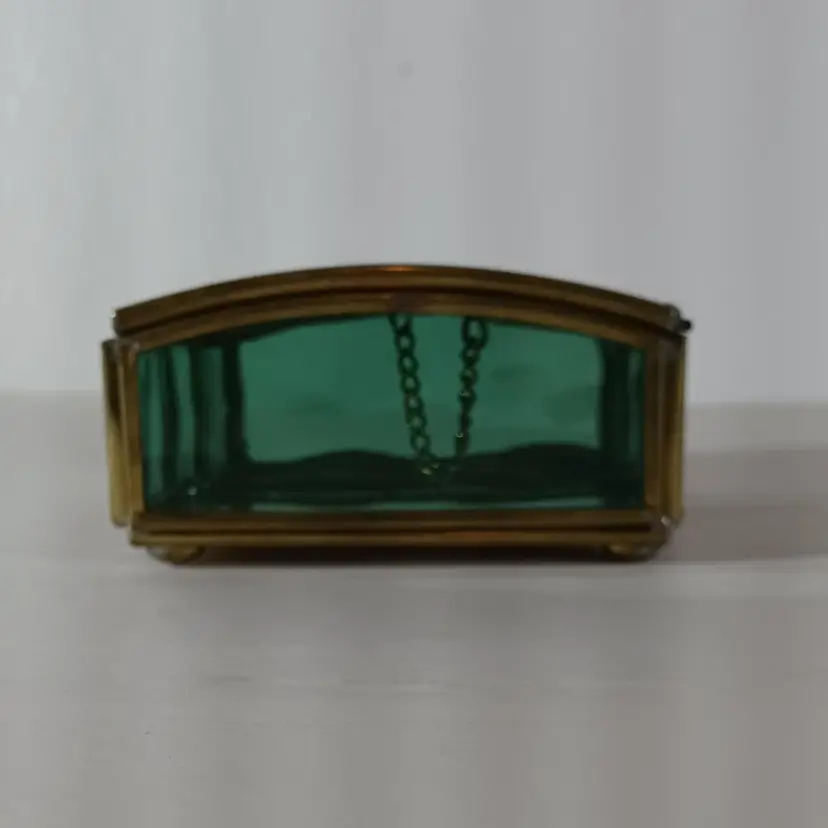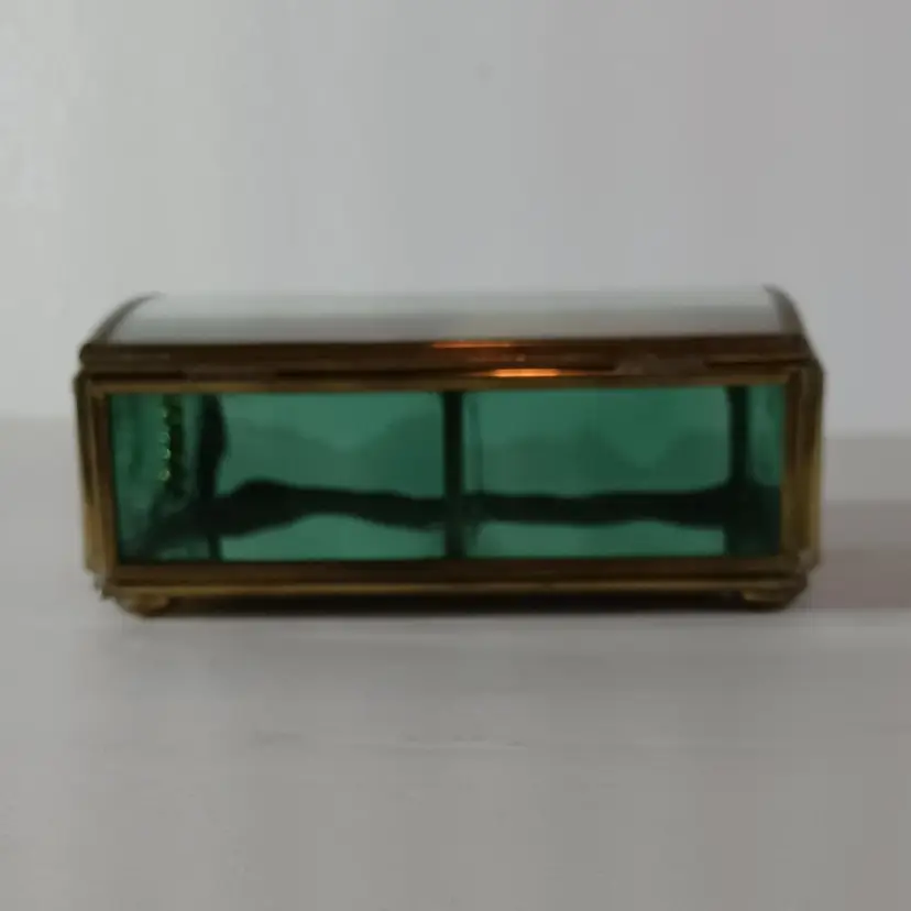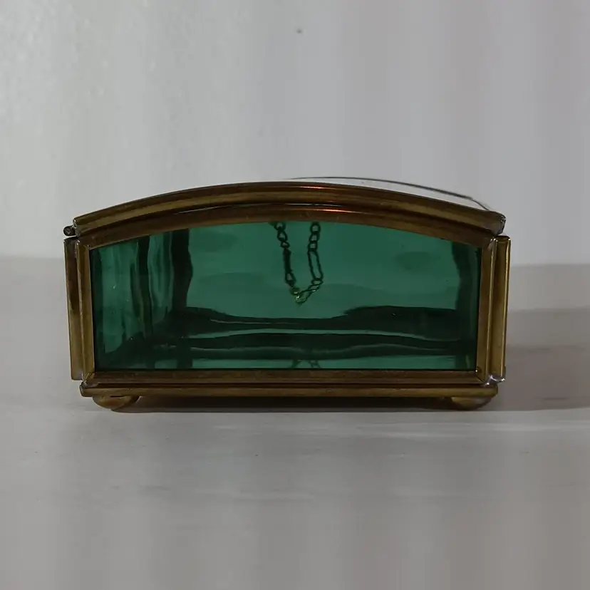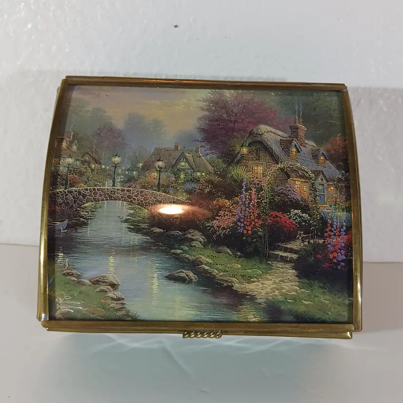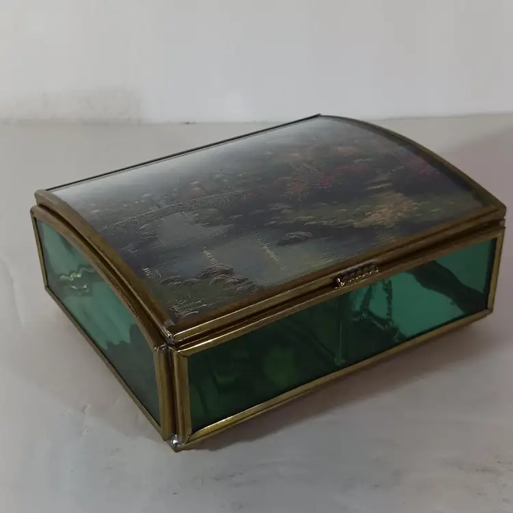 ENESCO Green Glass JEWELRY KEEPSAKE TRINKET BOX THOMAS KINKADE Mirrored