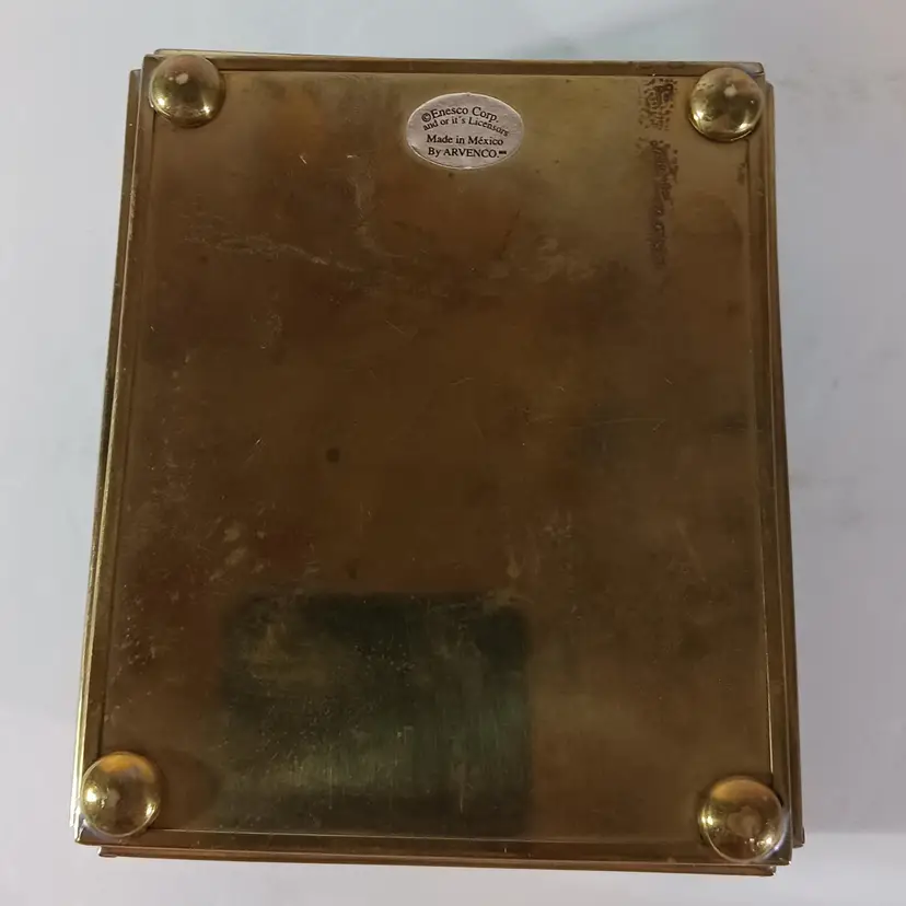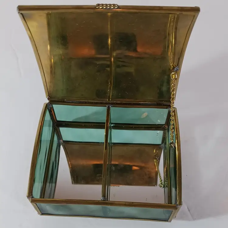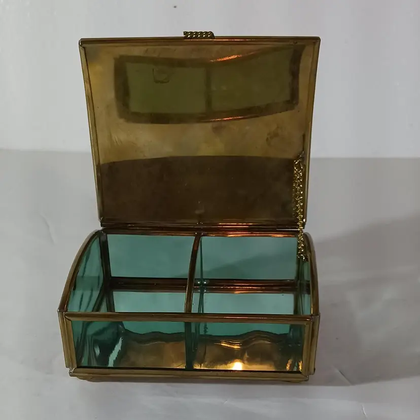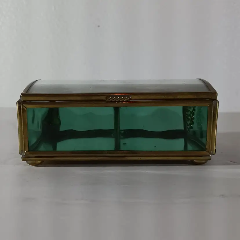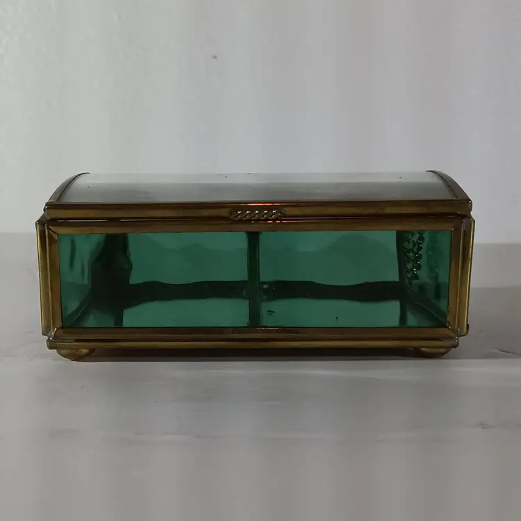 ENESCO Green Glass JEWELRY KEEPSAKE TRINKET BOX THOMAS KINKADE Mirrored