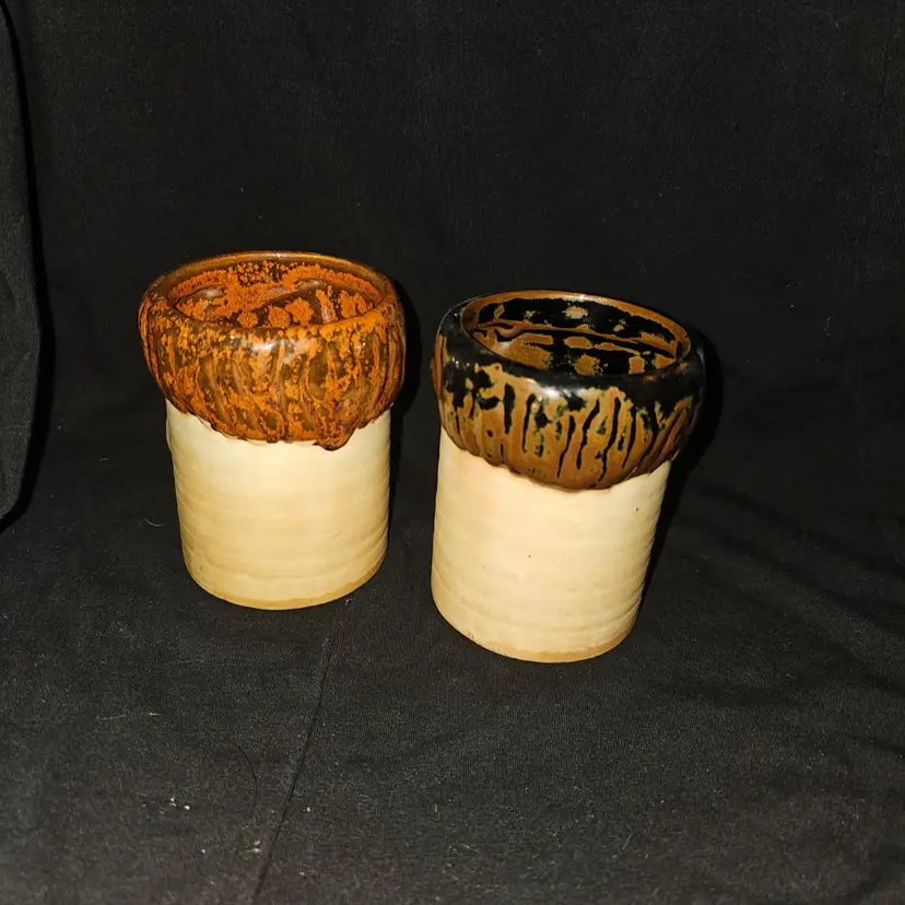 Unique man and woman mug set. Made in Japan. Glazed on the inside and somewhat bisque on the outer side. Risqué style. Holds about 6 ounces of liquid. No chips or cracks.