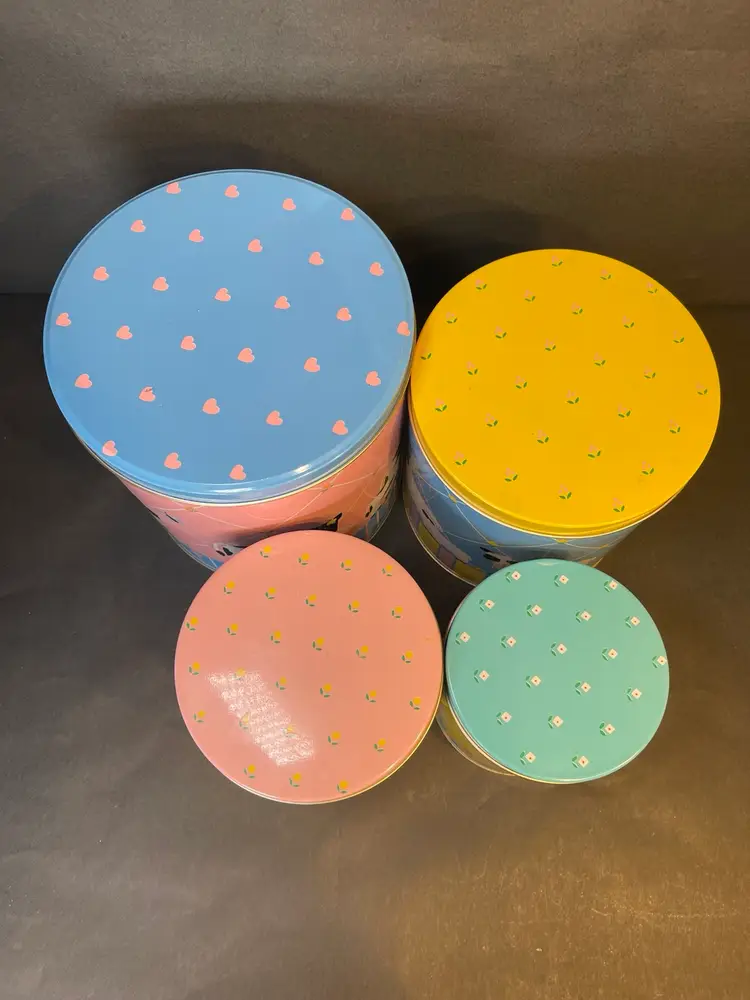 Made of durable metal, these tins are the perfect size for storing small items or simply displaying as a charming addition to your collection. The tins were originally made in Hong Kong and are part of the Enesco brand.