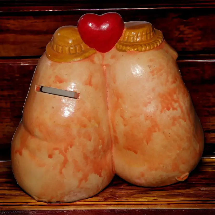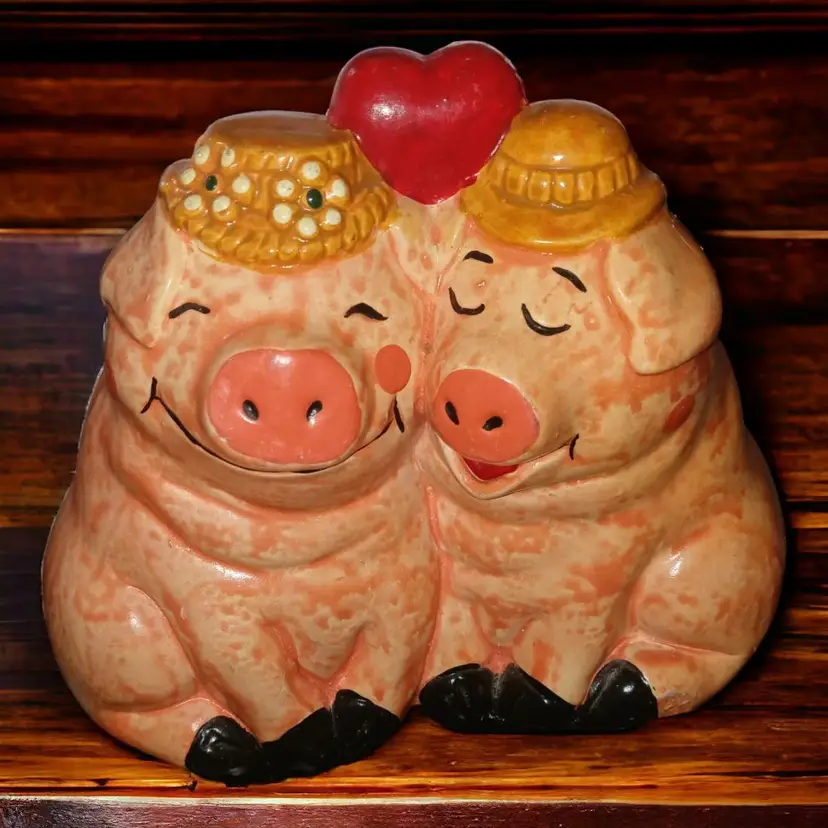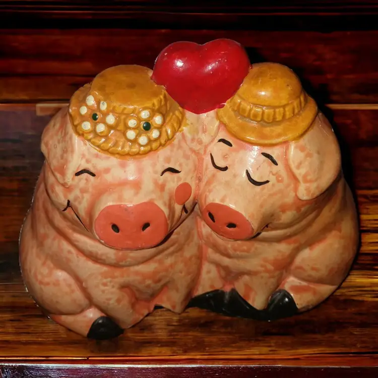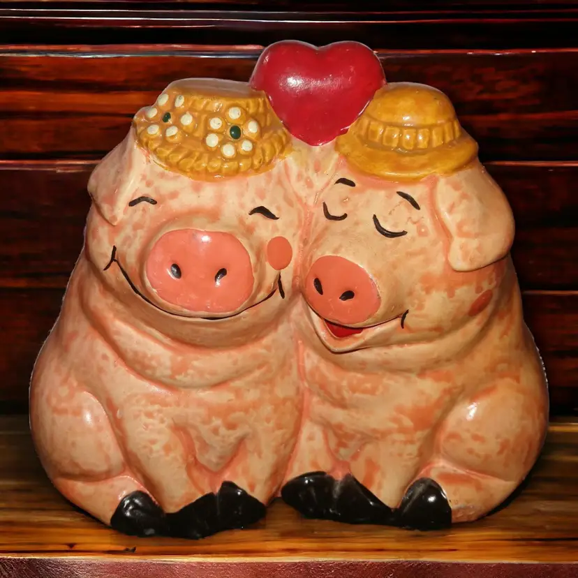 Vintage 1979 Enesco "Pigs In Love" Two Pigs and a Heart Bank Some paint fading/wear due to age. No Chips. No Cracks. Condition is very good for its age. Please see pictures for condition and signs of wear.