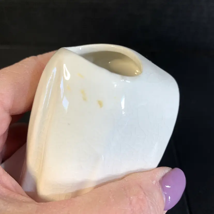 This is just so pretty. No chips or cracks but does have some crazing to the glaze. Measures 2 3/4 inches across, 2 1/2 inches wide and 3 3/4 inches tall. Weighs 4 ounces. If the actual postage ends up being less than what you paid, you will be refunded for anything over one dollar.