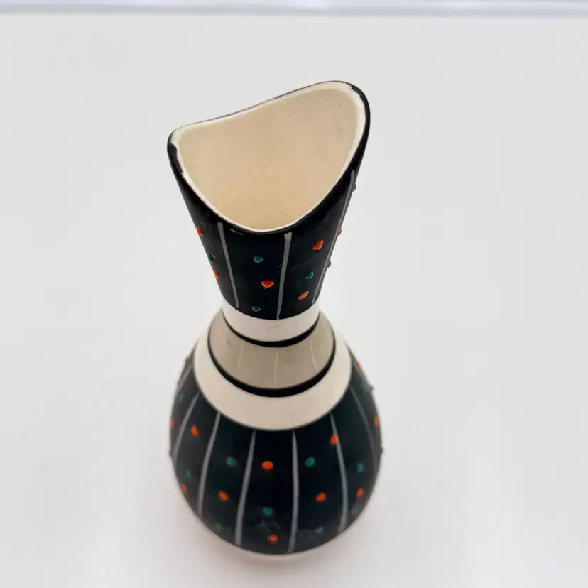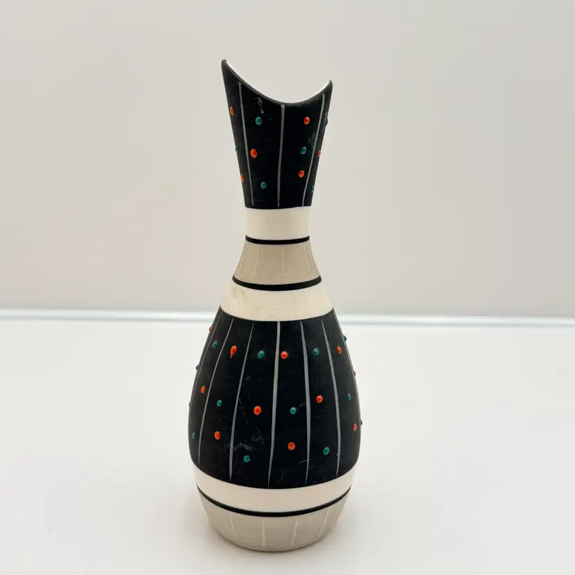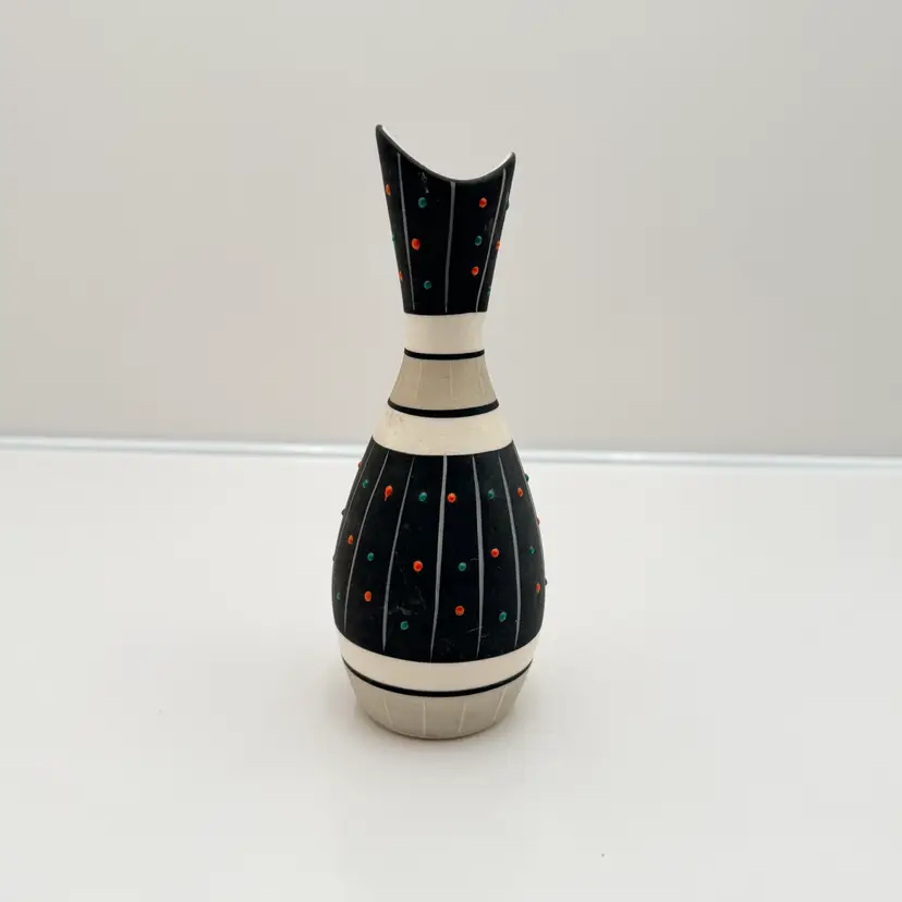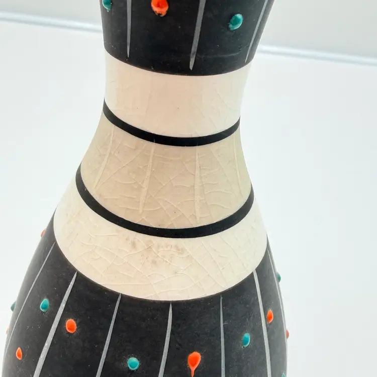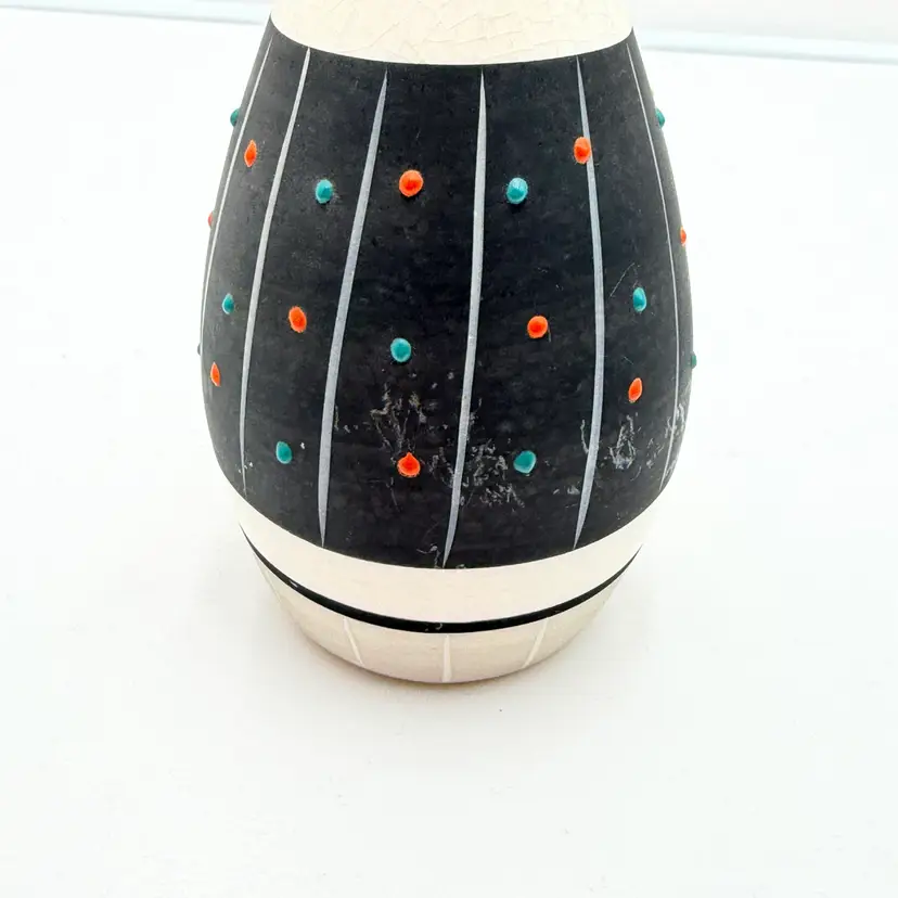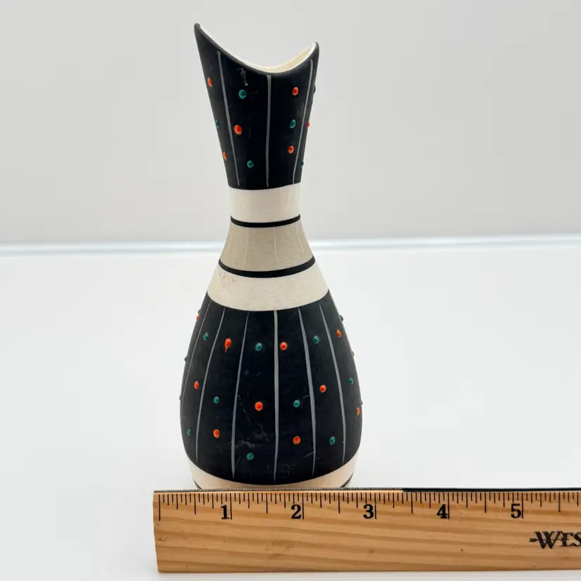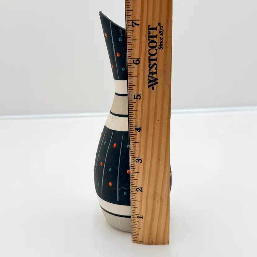 As shown 7.25 inches tall by 3 inches wide No chips or cracks. Some scratches to matte finish