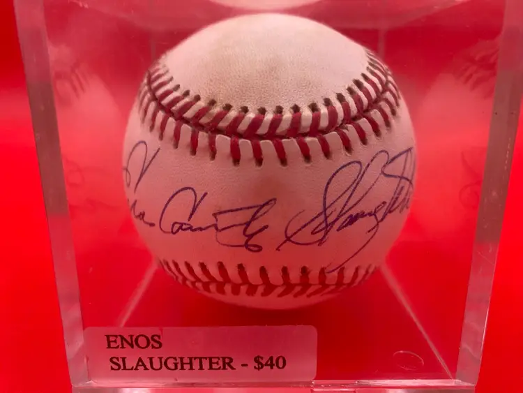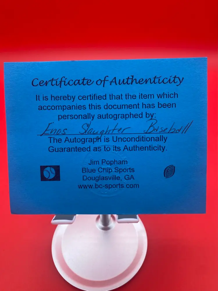 You are purchasing one Enos 'Country' Slaughter Signed Official American League Baseball. This Listing includes a Plastic Case and Certificate of Authenticity by Blue Chip Sports. This Ball is in overall good condition. See images for a closer look at each angle. No chips or cracks on the Case. No rips or stains on the Certificate. Tamper-Proof Sticker Seals have wear but are not torn through.