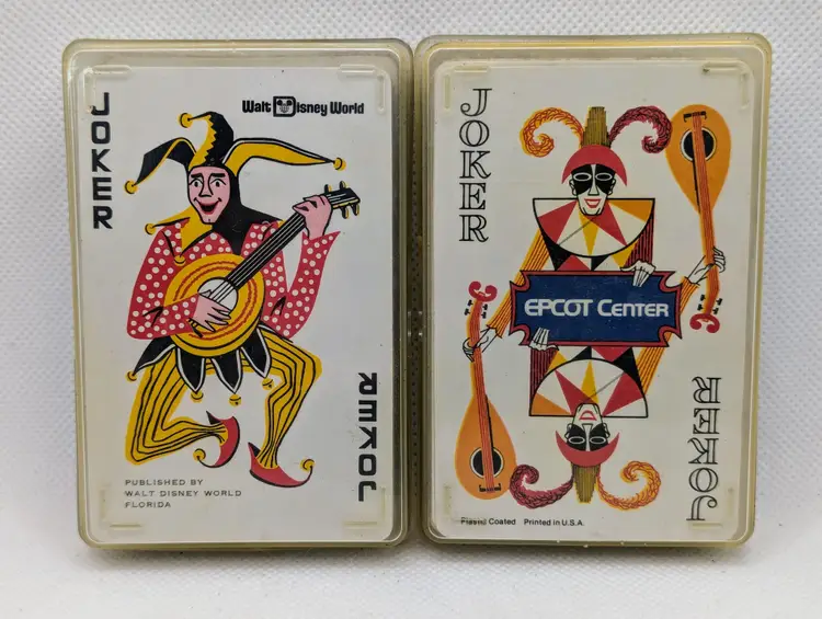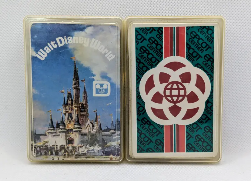 This listing is for 2 very nice plastic coated vintage EPCOT CENTER And WALT DISNEY WORLD Playing Card Decks (2) In Hard Cases. They are original complete from the 1980s. Perfect addition to game night for any Disney fan. Made in USA!