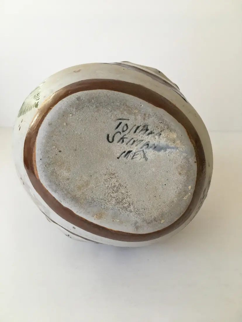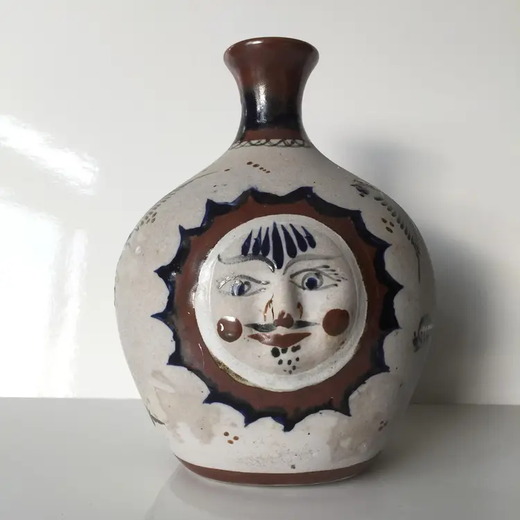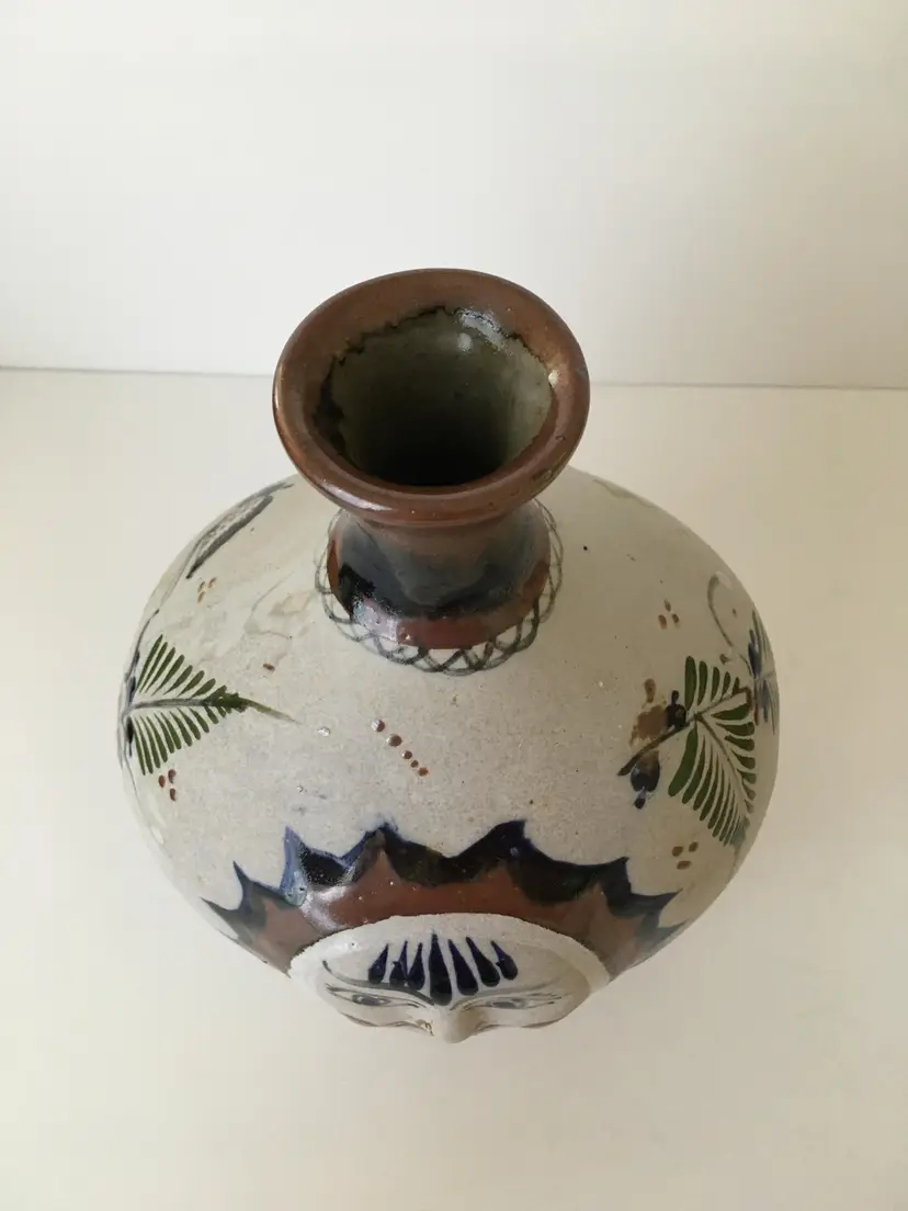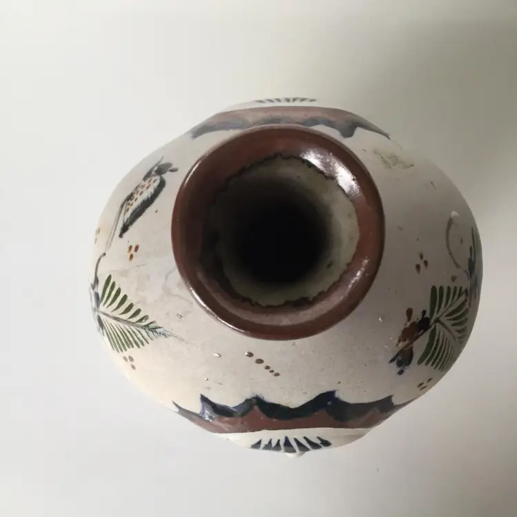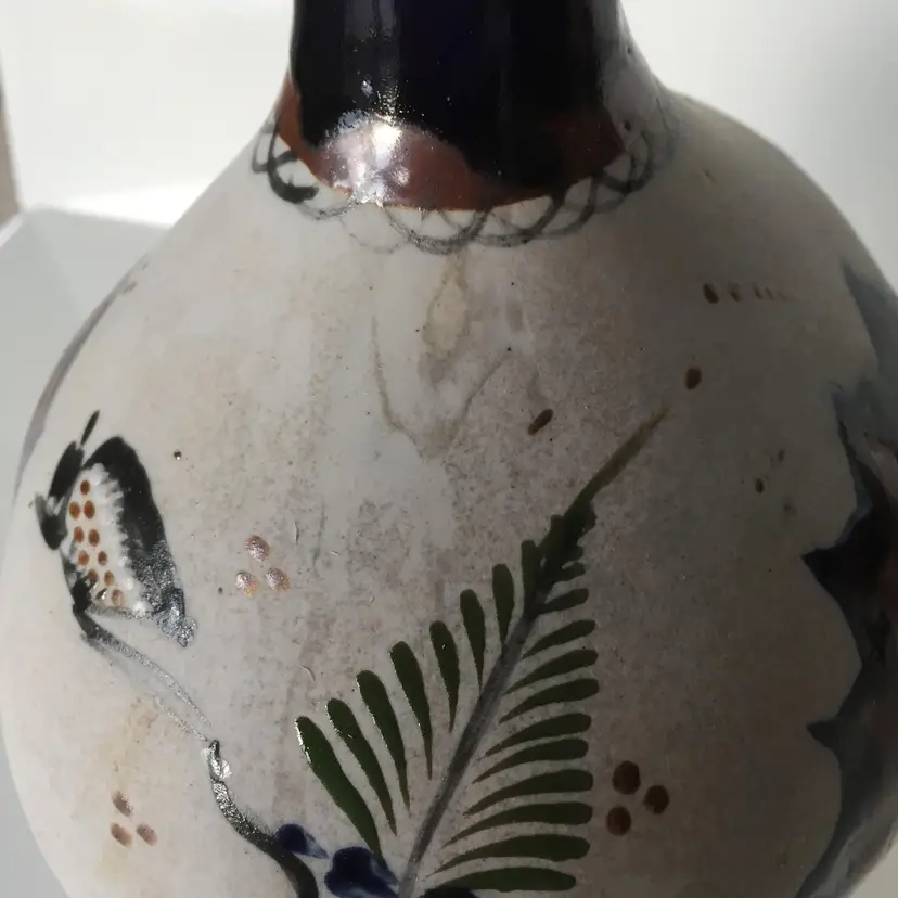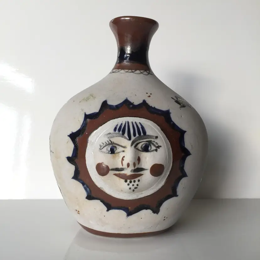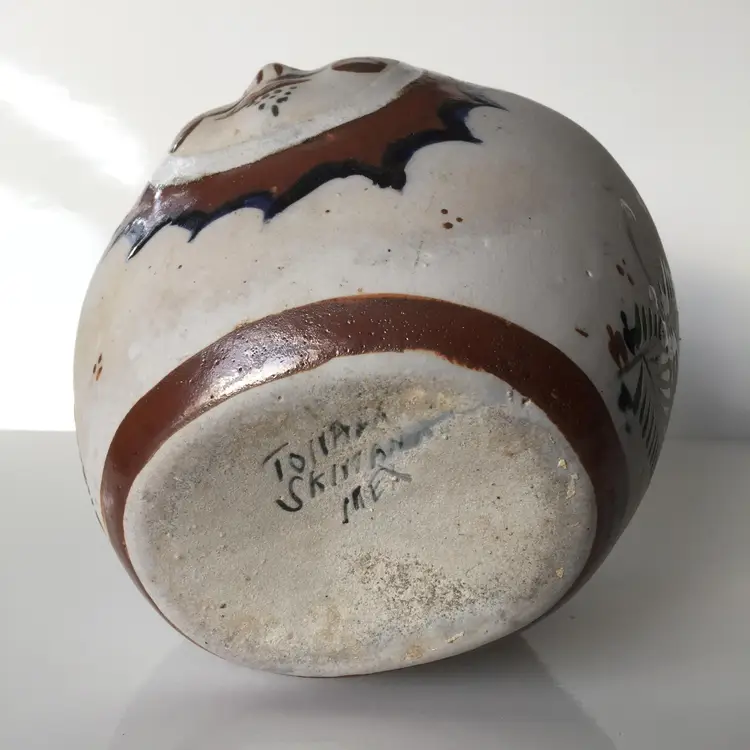 No chips. Crack in pottery at nose. A bit of staining.