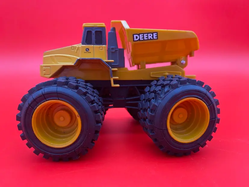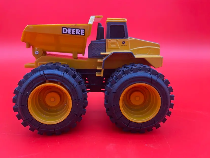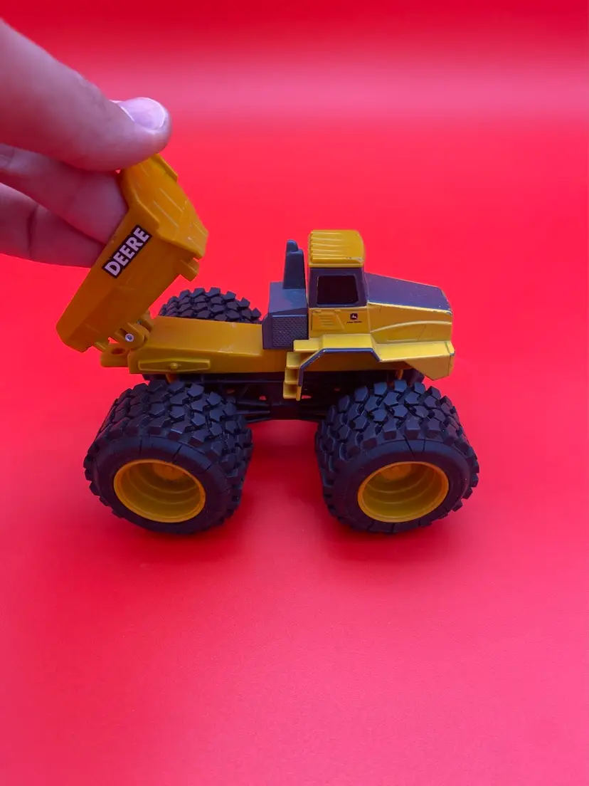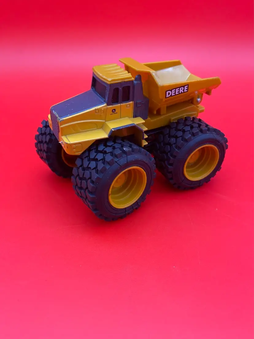 You are purchasing one John Deere Yellow Big Scoop Construction Dump Truck Toy by ERTL. This Truck is around 4.75 inches long, 3.5 inches wide, and 3.5 inches tall. This Toy is in good overall condition. See images for minor signs of wear. No breaks.