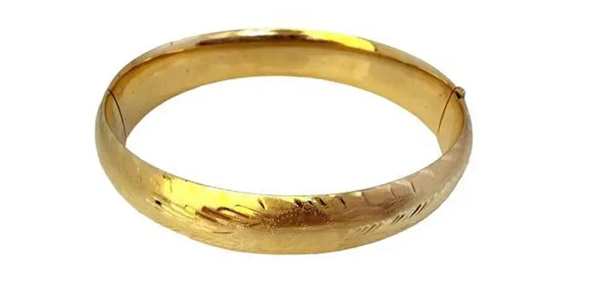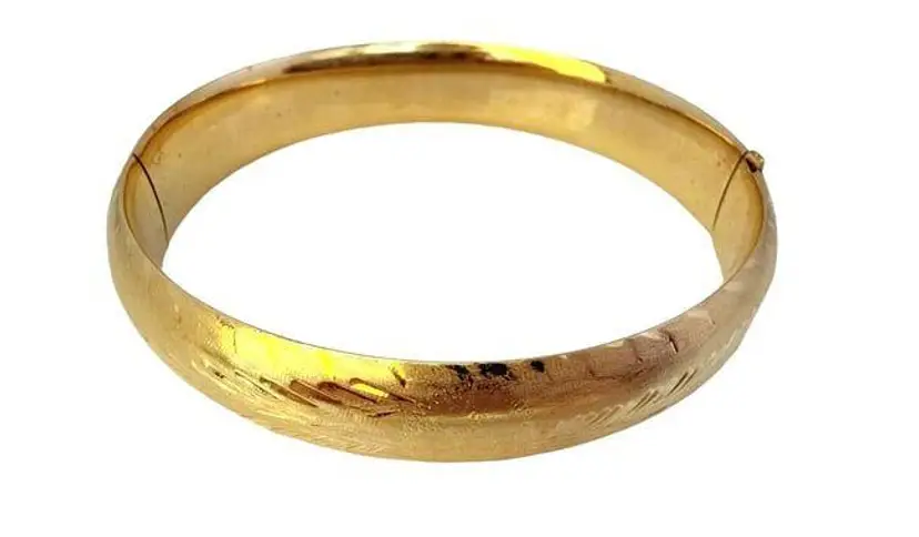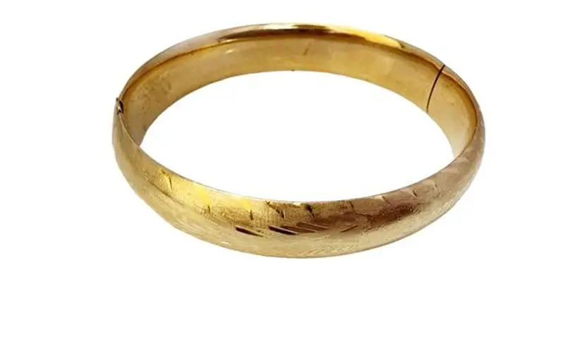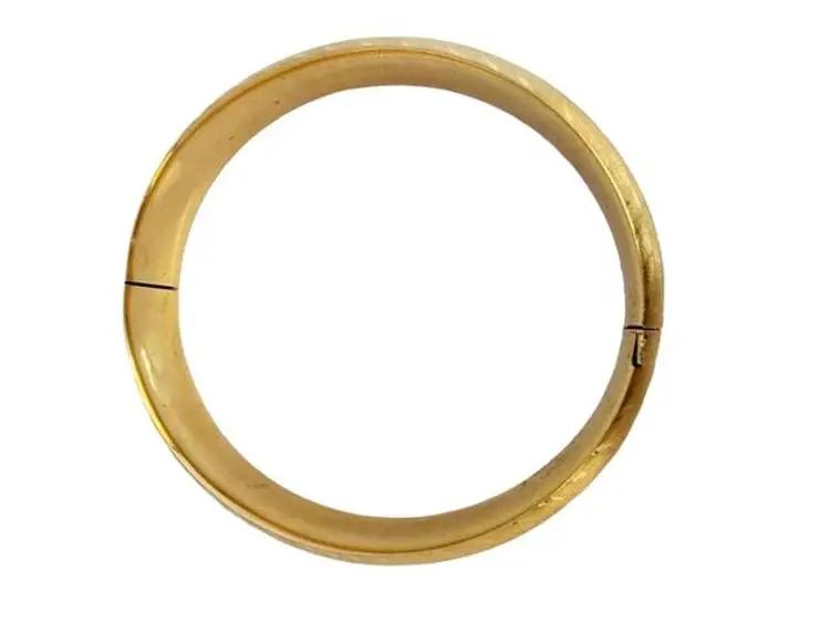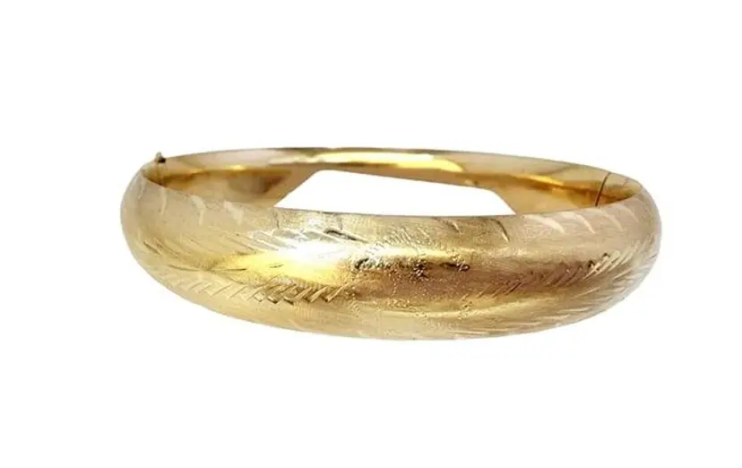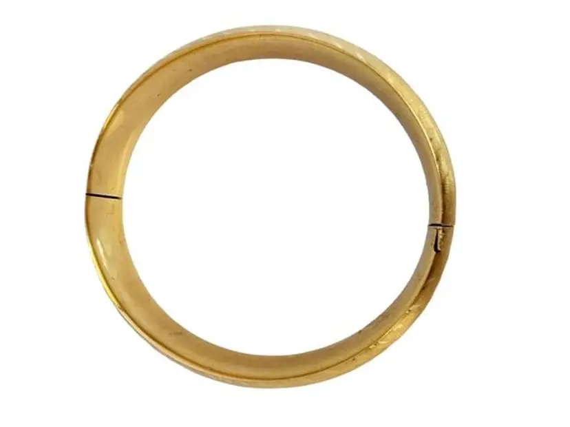 Estate 14kt Gold Brushed & Etched Hinged Bangle Bracelet (A5533)